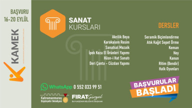 Kahramanmaraş Büyükşehir Belediyesinin, nitelikli iş gücünü artırarak istihdama katkı sağlamak ve vatandaşların mesleki gelişimlerine destek olmak için düzenlediği Meslek Edindirme ve Sanat Eğitimi Kursları’nda (KAMEK) yeni dönem başlıyor. Kişisel Gelişim, Hobi, Meslek Edindirme ve Sanat alanlarında uzman eğitmenler tarafından kursiyerlere; Aşçı Yardımcılığı, Pastacı Çırağı, İngilizce, Diksiyon, Takı Tasarım, Fotoğraf Çekimi, Karakalem Resim, Hüsn-i Hat, Keman, Ney, Halk Oyunları ve Ritim gibi toplam 22 farklı branşta eğitim verilecek. 18 yaş ve üzeri vatandaşların katılabileceği kurslara başvurular 20 Eylül Cuma gününe kadar devam edecek. Büyükşehir Belediyesinden yapılan açıklamada, ücretsiz olarak düzenlenecek kurslara https://kahramanmaras.bel.tr/duyuru/2024/09/16/kamek-atolyeleri-basvuru-formu internet adresi üzerinden çevrimiçi başvuru yapılabileceği ve başvuru şartlarına ilişkin detaylı bilgiye 0552 033 99 51 numaralı WhatsApp Danışma Hattından ulaşılabileceği belirtildi.