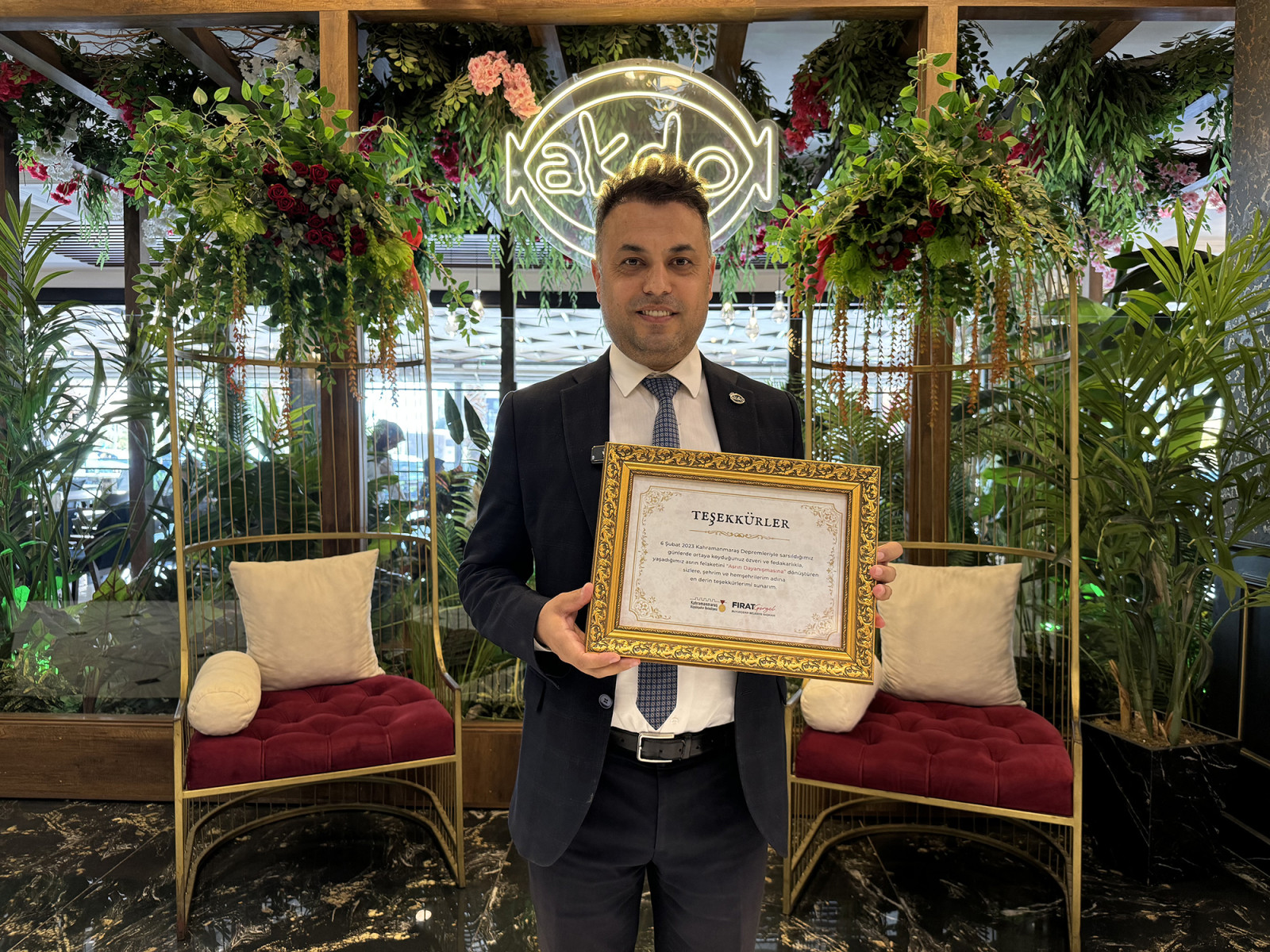 Yeni Kahramanmaraş’ın imar ve inşası için gecesini gündüzüne katarak çalışan Kahramanmaraş Büyükşehir Belediye Başkanı Fırat Görgel, 6 Şubat depremleri sonrası göstermiş olduğu özveri ve gayretle asrın felaketini asrın dayanışmasına dönüştüren esnaflara teşekkür plaketi gönderdi. “6 Şubat 2023 Kahramanmaraş Depremleriyle sarsıldığımız günlerde ortaya koyduğunuz özveri ve fedakârlıkla, yaşadığımız asrın felaketini asrın dayanışmasına dönüştüren sizlere şehrim ve hemşehrilerim adına en derin teşekkürlerimi sunarım” yazılı teşekkür plaketleri, esnaflar tarafından da büyük bir beğeniyle karşılandı. Belgeler, sadece bir takdir göstergesi değil aynı zamanda toplumun dayanışma ve yardımlaşma ruhunun bir nişanesi olarak değerlendirildi.