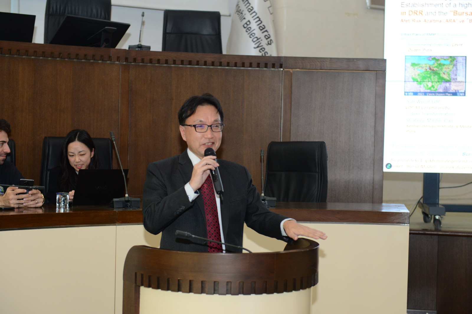 Yeni Kahramanmaraş’ın imar ve inşası noktasında tüm alanlarda çalışmalar yoğun bir şekilde devam ederken Kahramanmaraş Büyükşehir Belediyesi, Çevre, Şehircilik ve İklim Değişikliği Bakanlığı, Türkiye Belediyeler Birliği (TBB) ve Japonya Uluslararası İşbirliği Ajansı (JICA) iş birliğiyle hazırlanan Yenilikçi Yeniden Yapılanma Planı’na ilişkin istişare toplantısı gerçekleştirildi. Büyükşehir Belediyesi Meclis Toplantı Salonu’nda gerçekleştirilen toplantıda Büyükşehir Belediyesi bürokratları, Japonya Uluslararası İşbirliği Ajansı ve paydaş kurum temsilcileri de yer aldı. Toplantıya Türkiye’nin farklı şehirlerinden yerel yönetim temsilcileri de canlı olarak katılım sağladı. Programda, Yenilikçi Yeniden Yapılanma Planı’nın amacı, zaman çizelgesi, afet risk yönetimine ilişkin dijital dönüşüm, yeni gelişim bölgeleri, altyapı projeleri, deprem anıt müzesinin inşası ve Japonya’da YYY Planı uygulamaları gibi pek çok konuya ilişkin değerlendirmelerde bulunuldu.
