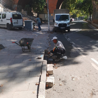 Büyükşehir Belediyesinin mobil hizmet ekibi, şehrin muhtelif noktalarında deforme olan yürüyüş yolları ve refüjlerde bakım, onarım ve yenileme çalışmalarını kesintisiz sürdürüyor.