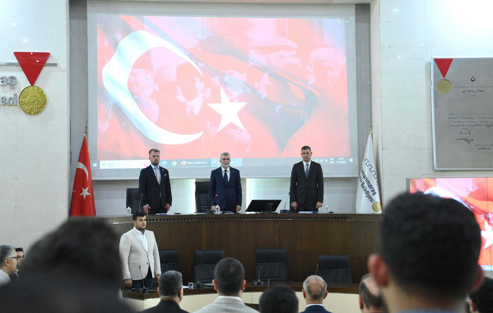 Kahramanmaraş Büyükşehir Belediyesinde Ekim ayı Olağan Meclis Toplantısı gerçekleştirildi. Başkan Fırat Görgel başkanlığında, ilçe belediye başkanları ve meclis üyelerinin katılımıyla Büyükşehir Belediyesi Meclis Toplantı Salonu’nda gerçekleştirilen toplantıda, 8 gündem başlığı görüşülerek karara bağlandı. Büyükşehir Belediyesinin sosyal medya hesaplarından canlı yayınlanan toplantıda; gelir tarifeleri, taşınmaz tahsisi, ek ödenek talepleri ve imar plan tekliflerinin yanı sıra ilçelerin ihtiyaç ve talepleri de görüşüldü. Hizmet kalitesini artırmak için Büyükşehir Belediyesinin araç filosuna; 17 adet kamyon, 1 adet arazöz ve 2 adet çekici tır alınması da meclis toplantısında görüşülerek karara bağlandı. Dilek ve temennilerle noktalanan meclis toplantısının hayırlara vesile olmasını dileyen Büyükşehir Belediye Başkanı Fırat Görgel, toplantıya katılım sağlayan herkese teşekkür etti.