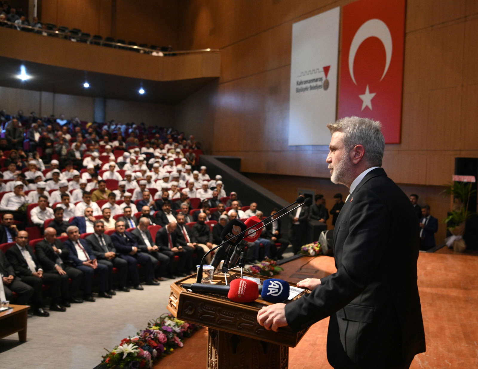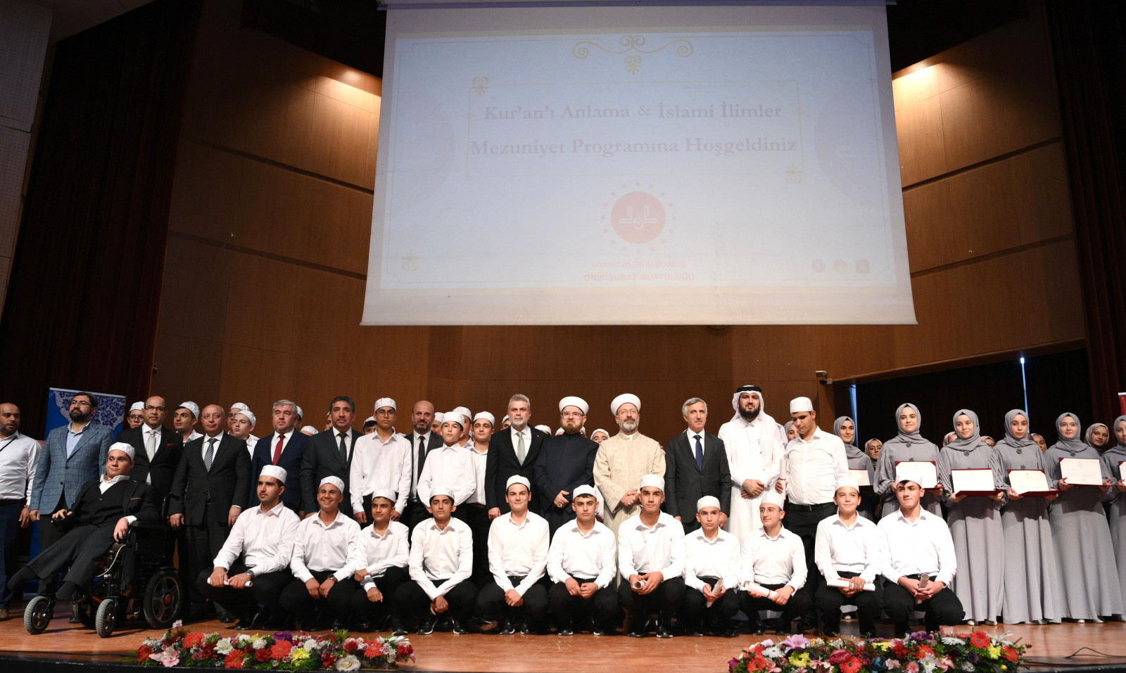 Kahramanmaraş Büyükşehir Belediye Başkanı Fırat Görgel, bir dizi ziyarette bulunmak ve programa katılmak üzere Kahramanmaraş’a gelen Diyanet İşleri Başkanı Prof. Dr. Ali Erbaş ile Kur’an’ı Anlama ve İslami İlimler Mezuniyet Töreni’ne katıldı. Mehmet Akif Ersoy Kültür Merkezi’nde gerçekleştirilen programda; Vali Mükerrem Ünlüer, Dünya Müslüman Âlimler Birliği Genel Başkanı Prof. Dr. Ali Muhyiddin el-Karadaği, İstiklal Üniversitesi Rektörü Prof. Dr. İsmail Bakan, Onikişubat Kaymakamı Salih Çiğdem, Diyanet İşleri Başkanlığı Yönetim Hizmetleri Genel Müdürü Bünyamin Kahraman, Onikişubat Belediye Başkanı Hanifi Toptaş, İl Müftüsü Abdurrahman Kotan, Katar Hayır Derneği Başkan Yardımcısı Ahmed Yusuf Fahri, Kur’an Kursu öğrencileri ve aileleri de yer aldı. Saygı duruşu ve İstiklal Marşı’nın okunmasıyla başlayan programda öğrenciler, seslendirdikleri şiir ve ilahilerle katılımcıların takdirini kazandı. Program, şehir protokolü tarafından hafızlara mezuniyet belgelerinin takdimiyle noktalandı.