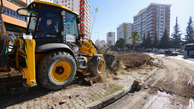 Büyükşehir Belediyesi, Bahçeci Hoca ve Karasu Bulvarı’nda enerji hatlarının yer altına alınmasının ardından bozulan yürüyüş yollarını yeniliyor.