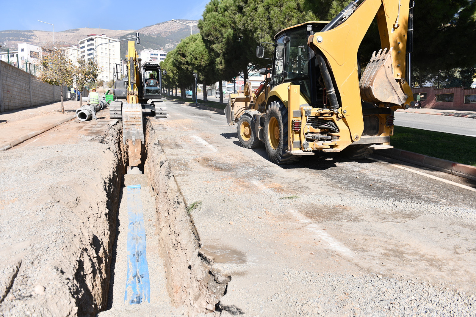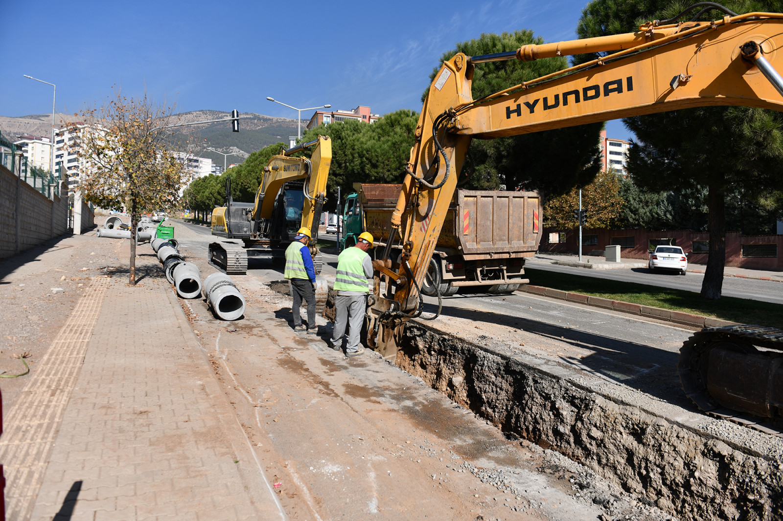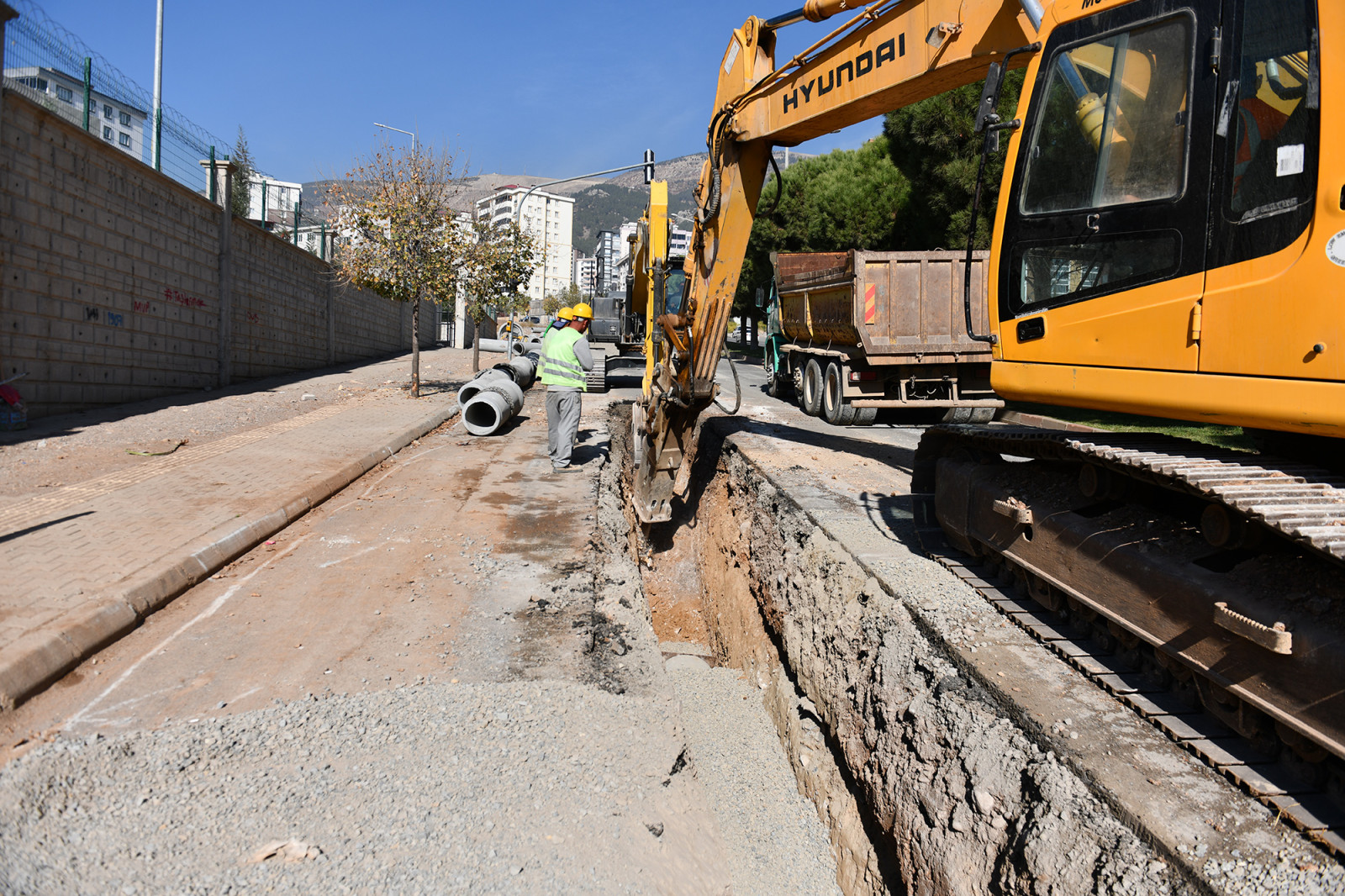 Kahramanmaraş Büyükşehir Belediyesi, 6 Şubat depremlerinin ardından şehir genelinde başlattığı altyapı seferberliğini durmaksızın sürdürüyor. Bir yandan depremde hasar alan altyapı sistemlerinin bakım ve onarımı büyük bir titizlikle sürdürülürken bir yandan da şehre yeni içmesuyu, kanalizasyon ve yağmursuyu hatları kazandırarak modern bir altyapı sistemi kuruluyor. Bu kapsamda Merkez İçmesuyu, Kanalizasyon ve Yağmursuyu İnşaatı Doğu Bölümü projesi çerçevesinde Onikişubat’ın önemli arterlerinden Ahır Dağı Caddesi’nde başlatılan kanalizasyon hattının imalatı sürüyor. KASKİ Genel Müdürlüğü koordinesindeki ekipler, toplamda 3 kilometre uzunluğunda yeni bir kanalizasyon hattını bölgeye kazandırmak için yoğun bir şekilde çalışıyor. Projenin tamamlanmasıyla Tavşantepe ve Hürriyet mahallelerinin kanalizasyon altyapısının iyileştirilmesi ve uzun yıllar güvence altına alınması hedefleniyor.