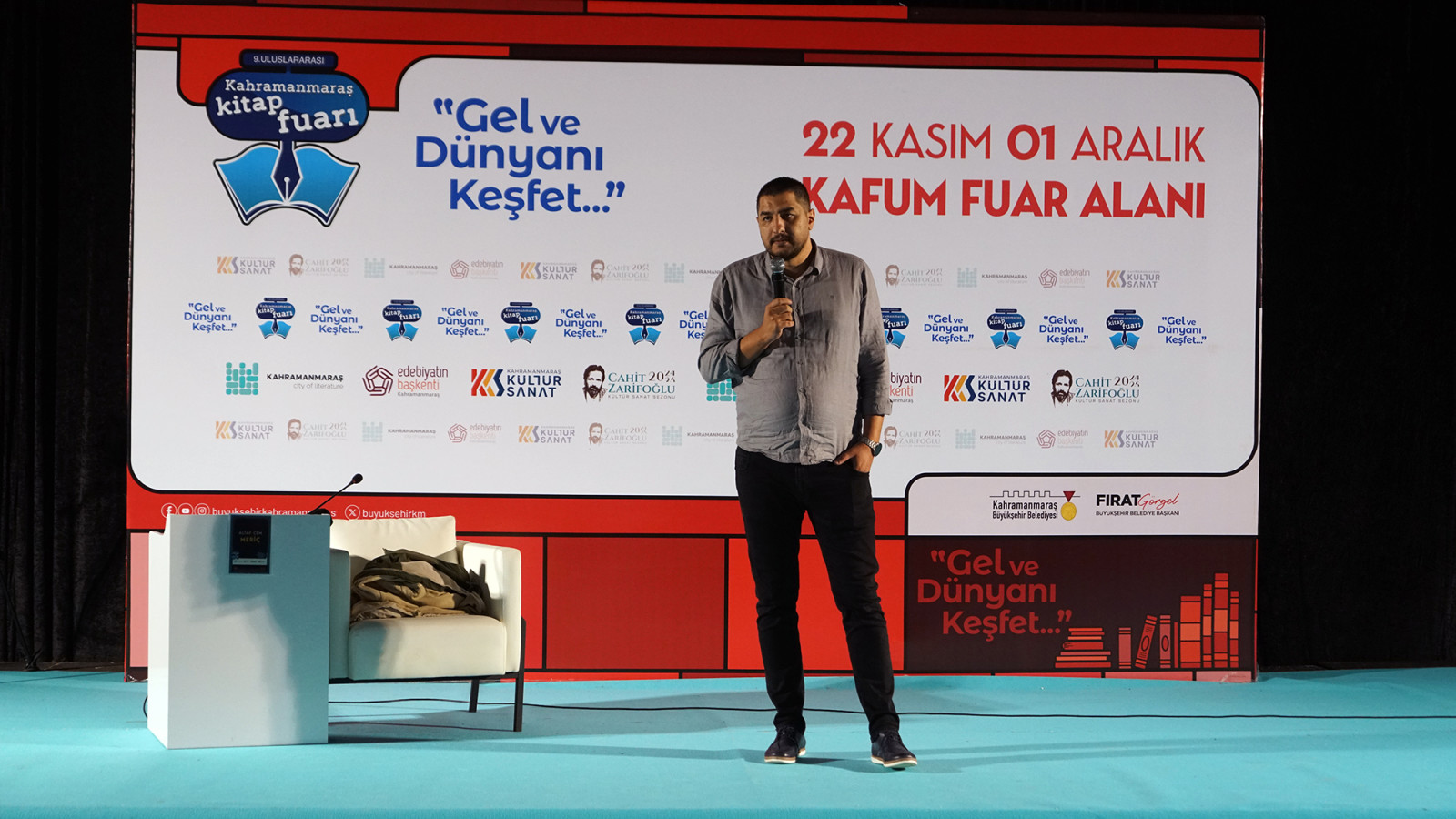 9. Uluslararası Kahramanmaraş Kitap Fuarı’nda ikinci gün tamamlandı. Edebiyat ve kültür tutkunlarının buluşma noktası olan fuarın ikinci gününde, Türk edebiyatının sevilen isimlerinden Selahattin Yusuf, Serhat Sabancı, Mustafa Yahya Coşkun ve Altay Cem Meriç, düzenlenen söyleşi programlarında okurlarıyla bir araya geldi.