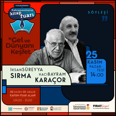 Kahramanmaraş Büyükşehir Belediyesinin düzenlediği ve büyük bir ilgiyle takip edilen 9. Uluslararası Kitap Fuarı, KAFUM Fuar Alanı’nda edebiyatseverleri ağırlamaya devam ediyor. 25 Kasım Pazartesi günü, birbirinden değerli yazarların katılacağı söyleşiler, imza günleri ve çeşitli etkinliklerle tam bir edebiyat şöleni yaşanacak. Edebiyat tutkunlarının yoğun katılım gösterdiği fuarın Pazartesi programı, ünlü yazarların söyleşileriyle dikkat çekiyor. Saat 13.00’da başarılı yazar Betül İlter, okurlarıyla bir araya gelerek yazarlık serüvenini ve edebiyata dair bakış açısını paylaşacak. 14.00’da iki değerli isim İhsan Süreyya Sırma ve Hacı Bayram Karaçor, aynı oturumda edebiyat, tarih ve kültür üzerine keyifli bir söyleşi gerçekleştirecek. Şiirleri ve etkileyici anlatımıyla tanınan Nurullah Genç, saat 16.00’da okurlarına unutulmaz bir edebiyat deneyimi sunacak. Saat 17.00’da gerçekleştirilecek söyleşide ise Ali Büyükçapar, edebiyat dünyasına dair düşüncelerini ve eserlerinden ilham verici detayları katılımcılarla paylaşacak.