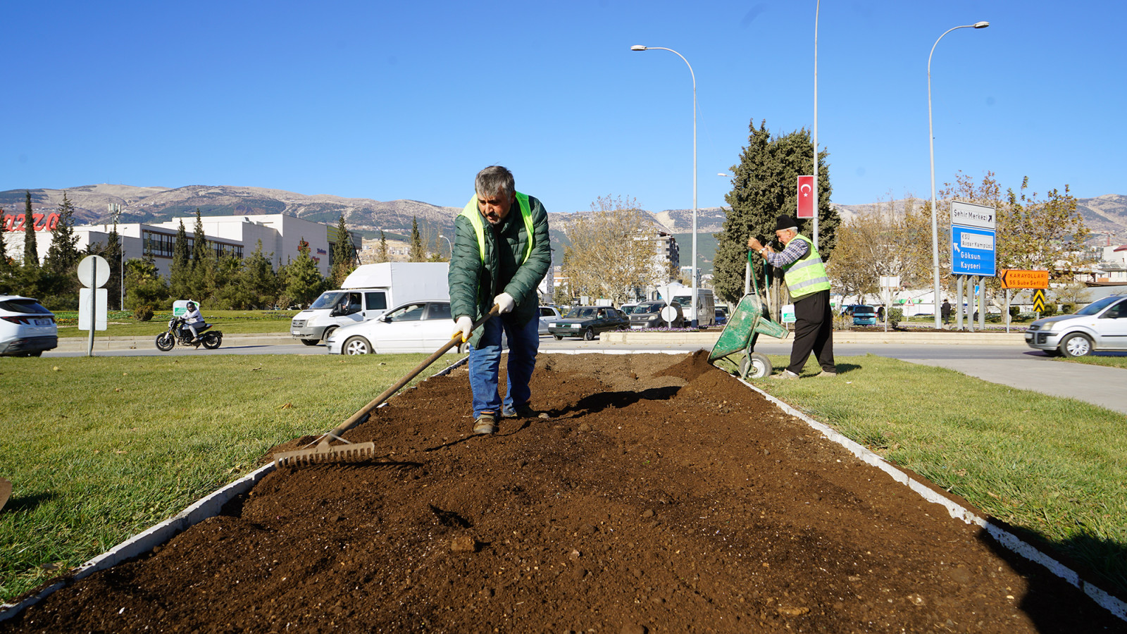 Büyükşehir Belediyesi, daha yeşil, estetik ve yaşanabilir bir çevre oluşturmak adına kavşaklarda başlattığı mevsimlik çiçek dikimini sürdürüyor. Toplamda 500 binin üzerinde çiçek toprakla buluşturulacak.