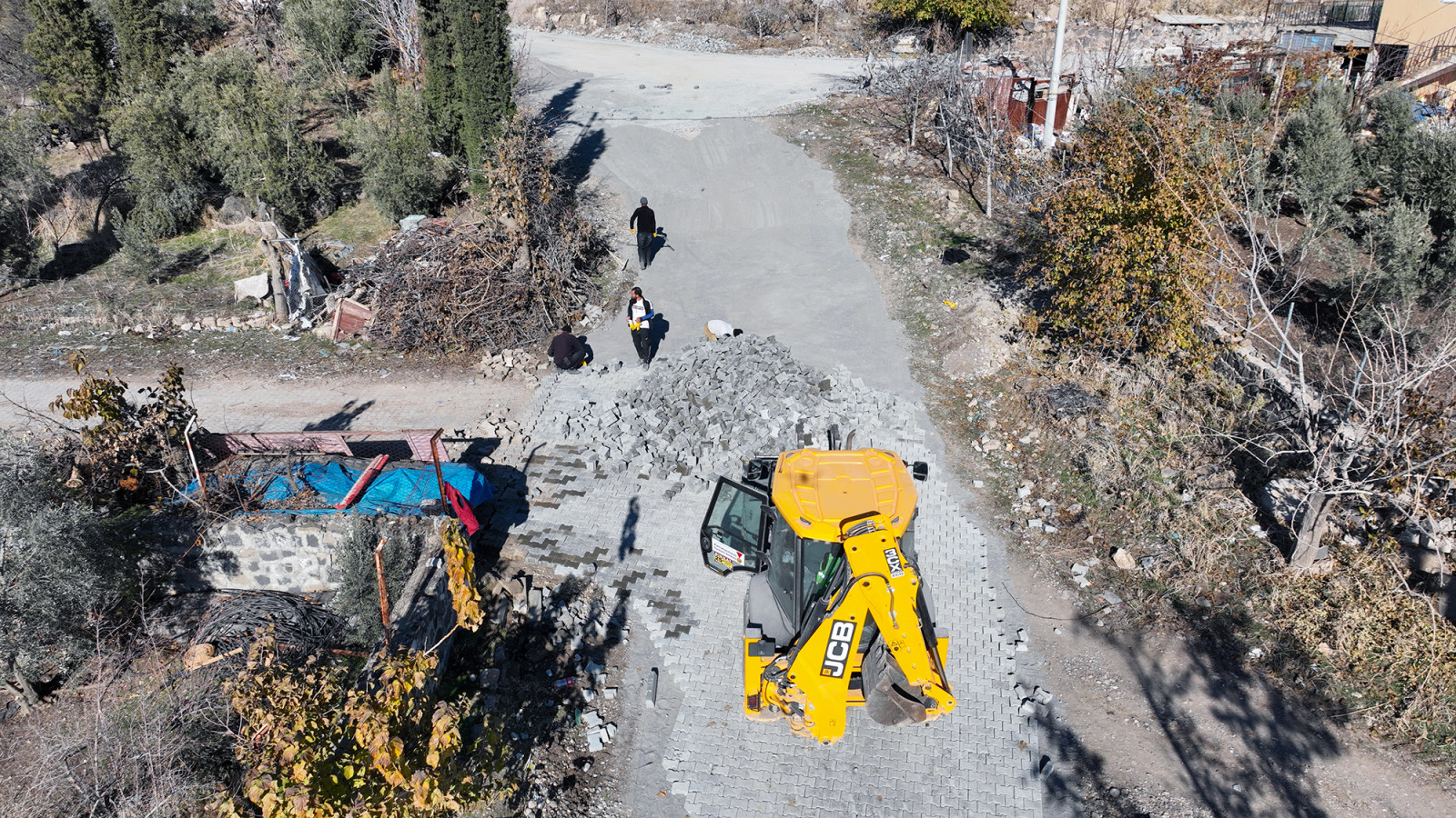 Büyükşehir Belediyesi, Pazarcık’ın kırsal mahallelerinden Çiğdemtepe’de stabilize ara yolları 5 bin metrekare kilit parke ile kaplayarak ulaşım standardını artırıyor.