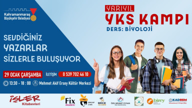 Büyükşehir Belediyesinin ücretsiz YKS kampı, 29 Ocak Çarşamba günü Biyoloji dersiyle devam edecek. 13.30 – 18.00 saatleri arasında Mehmet Akif Ersoy Kültür Merkezi’nde gerçekleştirilecek programda; Aslan Aydın, Murat Sarıışık ve Engin Önüç, öğrencilerle buluşacak.