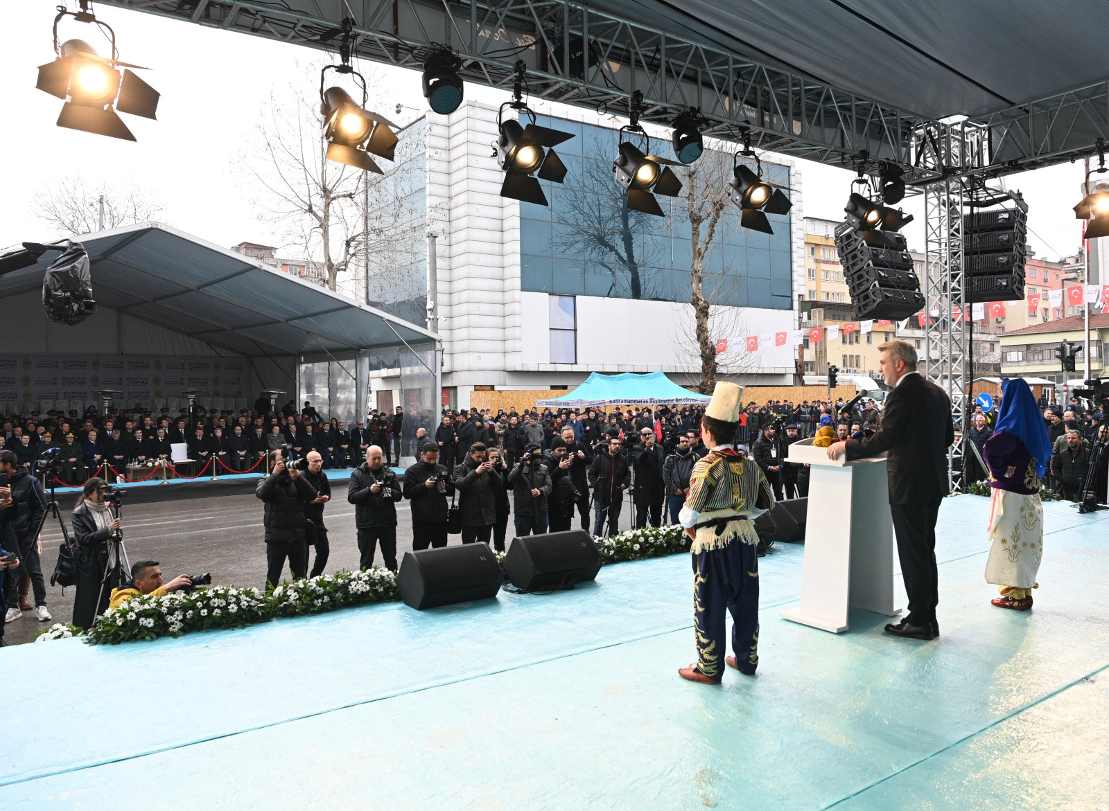 12 Şubat Kurtuluş Bayramı etkinliklerinde konuşan Büyükşehir Belediye Başkanı Fırat Görgel, “Bugün, tarihin yüklediği bir sorumluluğun, bir şuurun, bir inancın izinde toplanmış bulunuyoruz. 6 Şubat’ta yüreklerimize ateş düşüren büyük bir felaket yaşadık. Ama biz Maraşlılar olarak, bu toprakların bize miras bıraktığı iradeyle, imanı ve cesareti kuşanarak, bir kez daha ayağa kalkmanın mücadelesini veriyoruz. Bugün, tarihin tekerrür ettiği bir noktadayız. Bundan 105 yıl önce bu kadim şehir, istiklali için gözünü kırpmadan can veren kahramanların destanına şahit olmuştu. İşte bugün de aynı ruhla, aynı inançla buradayız. Depremin açtığı yaralar, kayıplarımızın hüznü hala içimizi burkuyor. Ama biliyoruz bu şehrin evlatları, yılmayanların, yıkılmayanların torunlarıdır. Biz, Sütçü İmam’ın, Senem Ayşe’nin, Arslan Bey’in, Ali Sezai Efendi’nin torunlarıyız. Biz, esareti değil, şerefi tercih edenlerin mirasçısıyız” cümlelerini kaydetti.
