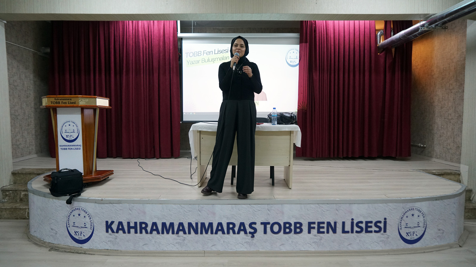 Kahramanmaraş Büyükşehir Belediyesi, şehrin kültürel ve sanatsal potansiyeline katkı sağlamak amacıyla düzenlediği okur - yazar buluşmaları kapsamında öğrencileri edebiyatın usta kalemleriyle buluşturuyor. Son olarak gerçekleştirilen etkinlikte Yazar Merve Uygun ve Şair Samet Karataş, lise öğrencileriyle bir araya gelerek edebiyatın farklı yönlerine dair önemli bilgiler paylaştı. TOBB Fen Lisesi’nde öğrencilerle buluşan Yazar Merve Uygun; masal, öykü ve hikâye türlerinin Türk edebiyatındaki yeri ve önemine dair kapsamlı bir söyleşi gerçekleştirdi. Geleneksel anlatım biçimlerinin modern edebiyattaki etkilerini ele alan Uygun, öğrencilerin sorularını da yanıtlayarak onlara edebi üretim süreci hakkında bilgi verdi. Masalların geçmişten günümüze taşıdığı kültürel mirasın önemini vurgulayan yazar, gençlerin bu alana ilgisini artırmak amacıyla çeşitli önerilerde bulundu.