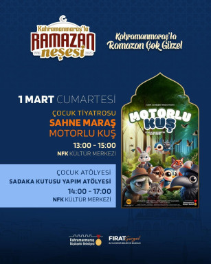 Aynı gün aynı mekânda, Sahne Maraş Tiyatro Okulu öğrencileri tarafından sahnelenecek olan “Motorlu Kuş” adlı tiyatro oyunu da çocuklarla buluşacak. 13.00 ve 15.00 saatlerinde iki seans olarak gerçekleştirilecek tiyatro gösterisi, çocukları hem eğlendirecek hem de düşündürecek. Eğlenceli anlatımı ve eğitici içeriğiyle dikkat çeken oyun, minik izleyicilere unutulmaz anlar yaşatacak.