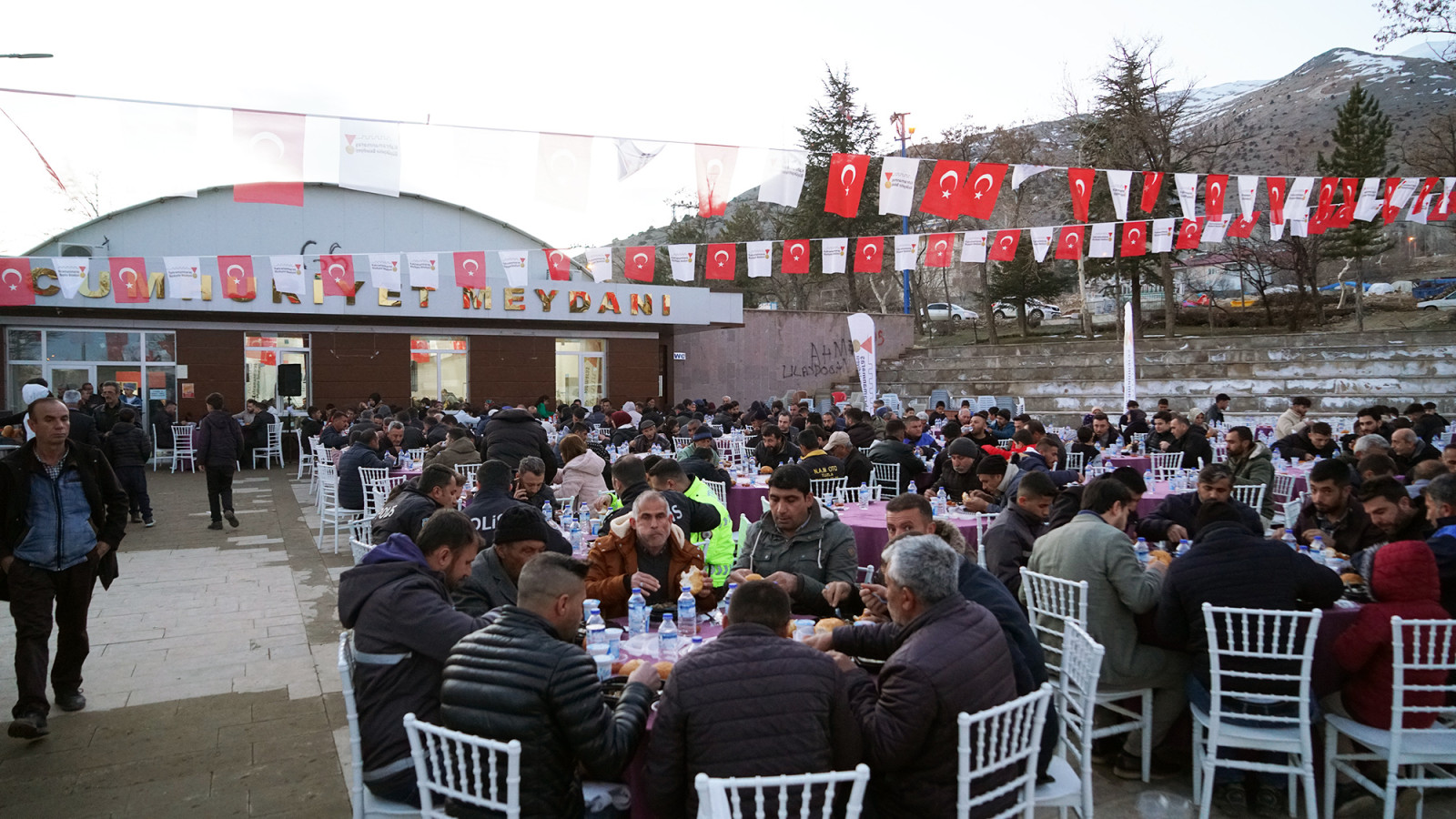 Büyükşehir Belediyesinin düzenlediği “İlçemde İftar Var” programı, Nurhak’ta vatandaşlarla buluştu. Cumhuriyet Meydanı’nda kurulan iftar sofrasında yüzlerce kişi aynı sofrada oruç açarak Ramazan’ın manevi iklimini birlikte yaşadı.