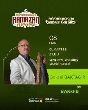Kahramanmaraş Büyükşehir Belediyesi, Ramazan ayının manevi atmosferini sanatla buluşturan etkinliklerine hız kesmeden devam ediyor. “Kahramanmaraş’ta Ramazan Çok Güzel” temasıyla düzenlenen programlar kapsamında, Türk müziğinin usta ismi, kanun sanatçısı ve bestekâr Göksel Baktagir, Kahramanmaraşlılarla buluşmaya hazırlanıyor. 8 Mart Cumartesi günü Necip Fazıl Kısakürek Kültür Merkezi’nde gerçekleştirilecek konser, Ramazan’ın huzur veren ikliminde sanatseverlere unutulmaz bir müzik ziyafeti sunacak. Saat 21.00’da başlayacak etkinlikte, Göksel Baktagir’in kanunla seslendireceği eserler, dinleyicilere derin duygular yaşatacak. Uzun yıllardır icra ettiği enstrümantal eserleriyle Türk müziğine önemli katkılar sunan Göksel Baktagir, farklı müzikal dokunuşları ve kendine has yorumu ile Kahramanmaraşlı sanatseverlere özel bir repertuvar sunacak. Klasik Türk müziği ve özgün bestelerden oluşan bu özel konser, Ramazan’ın manevi atmosferini müzikle taçlandıracak. Kahramanmaraş Büyükşehir Belediyesi, müzik ziyafetinin yaşanacağı bu anlamlı geceye tüm vatandaşları davet ederek, Ramazan ayının birlik ve beraberlik ruhunu sanatın gücüyle pekiştirmeyi hedefliyor.