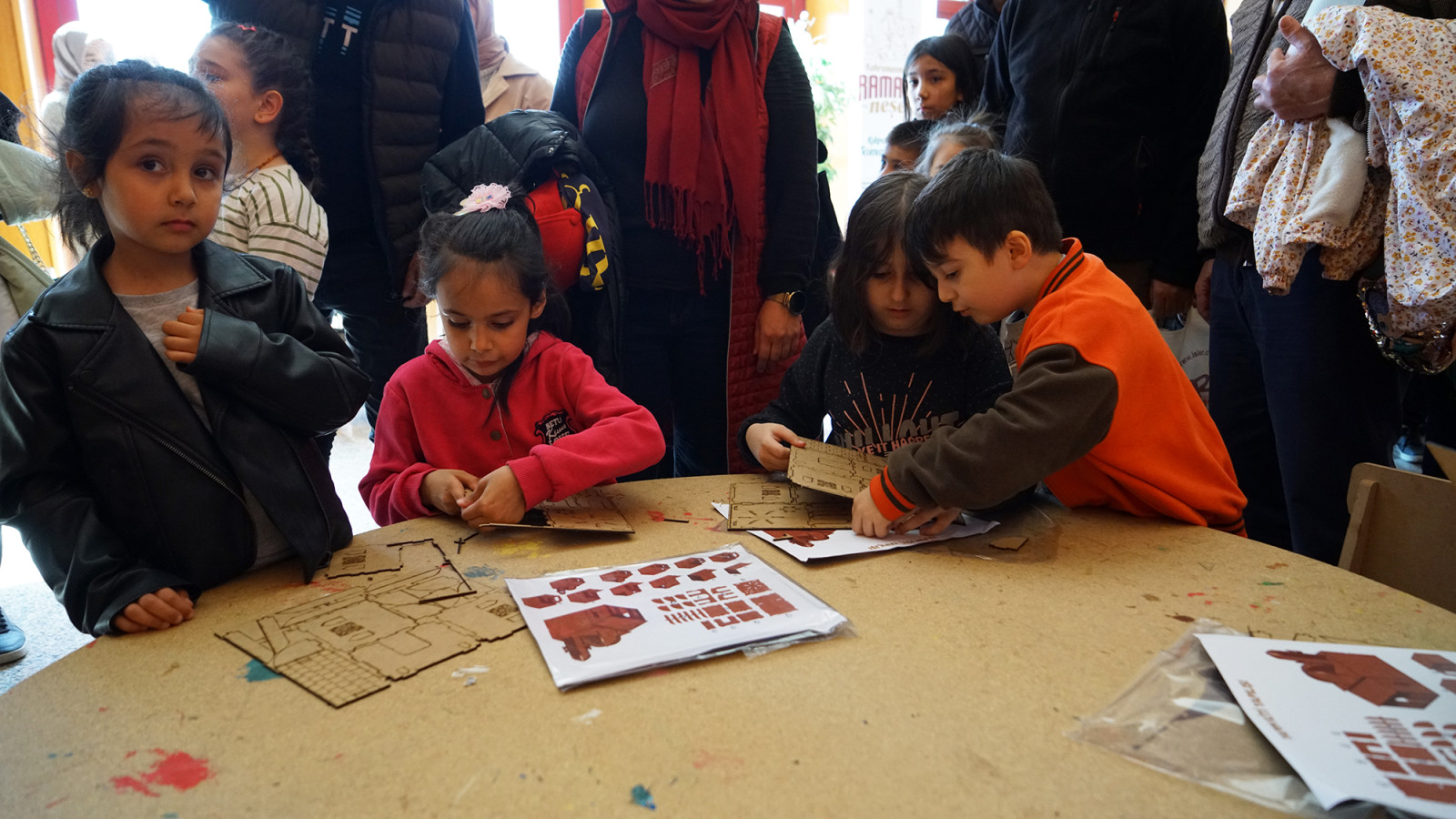 Sahne Maraş Tiyatro Okulu tarafından sahnelenen Karagöz ve Hacivat oyunu, salonu dolduran minik izleyicilere neşe dolu anlar yaşattı. Geleneksel değerlerin eğlenceli bir dille aktarıldığı gösteri, çocukların kahkahalarıyla renklendi. Öte yandan Ahşap Cami Yapım Atölyesi'nde ise minikler kendi cami maketlerini yaparak el becerilerini geliştirirken, grup çalışmaları sayesinde paylaşma ve iş birliği duygularını pekiştirdi.