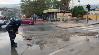 Büyükşehir Belediyesi, etkili olan sağanak yağışla inşaat alanlarından yola akarak mazgalları kapatan malzemeleri temizlemek için 100 araç ve 250 personelle sahada.