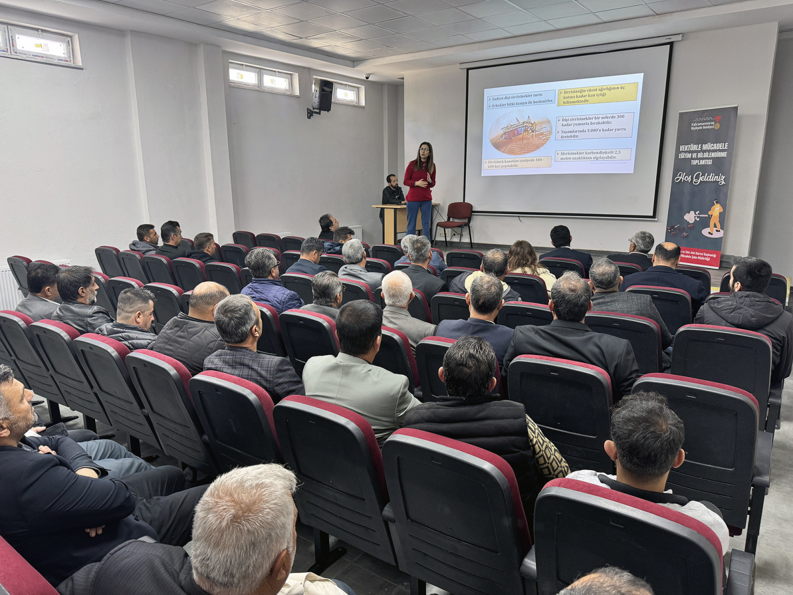 Etkinlikte, Kahramanmaraş Sütçü İmam Üniversitesi Fen Fakültesi Biyoloji Bölümü Öğretim Üyesi Dr. Özlem Güven, vektörlerin biyolojisi ve mücadelede etkili yöntemler üzerine detaylı bir sunum yaptı. Güven, özellikle sivrisinek, karasinek ve kemirgen gibi halk sağlığı açısından tehdit oluşturan canlıların yaşam döngüsü, çoğalma koşulları ve mücadele stratejileri hakkında bilimsel veriler paylaştı. Ziraat Yüksek Mühendisi Zekeriya Yurdabakan ise Büyükşehir Belediyesinin sahada yürüttüğü vektörle mücadele çalışmaları hakkında bilgi verdi. Yurdabakan, yılın 12 ayı aralıksız süren çalışmalar kapsamında uygulanan ilaçlama yöntemleri, çevre dostu teknikler ve yeni projeler hakkında katılımcılara kapsamlı bilgiler sundu.