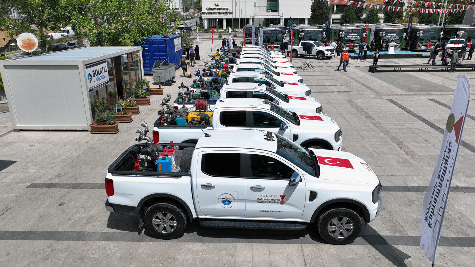 Kahramanmaraş Büyükşehir Belediyesi, hizmet kapasitesini artırmak ve şehrin dört bir yanında yürütülen çalışmalara hız kazandırmak amacıyla araç filosunu güçlendiriyor. Milli İrade Meydanı’nda düzenlenen törende; otobüs, pikap ve servis araçlarından oluşan 48 yeni aracın teslimi gerçekleştirildi. Törene; AK Parti Kahramanmaraş Milletvekili Ömer Oruç Bilal Debgici, Büyükşehir Belediye Başkanı Fırat Görgel, KİÜ Rektörü Prof. Dr. İsmail Bakan, AK Parti İl Başkanı Muhammed Burak Gül, MHP İl Başkanı Hüseyin Vahit Demiröz, Onikişubat Belediye Başkanı Hanifi Toptaş, AK Parti İl Kadın Kolları Başkanı Asuman Yavuz ve çok sayıda vatandaş katıldı.