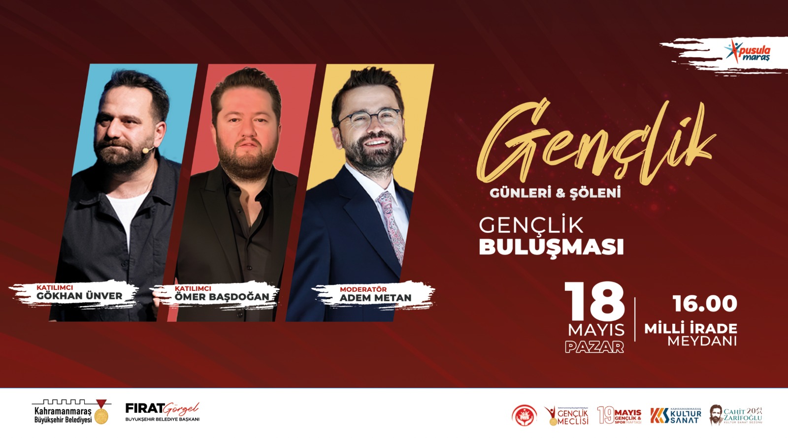 Kahramanmaraş Büyükşehir Belediyesi tarafından gençlerin sosyal ve kültürel hayatına katkı sunmak amacıyla düzenlenen “Gençlik Günleri ve Şöleni”, renkli ve dopdolu etkinliklerle gençlerle buluşmaya devam edecek. Etkinliğin ikinci günü olan 18 Mayıs Pazar, Milli İrade Meydanı’nda birbirinden özel konuklarla, eğlence ve ilham dolu bir programa sahne olacak.