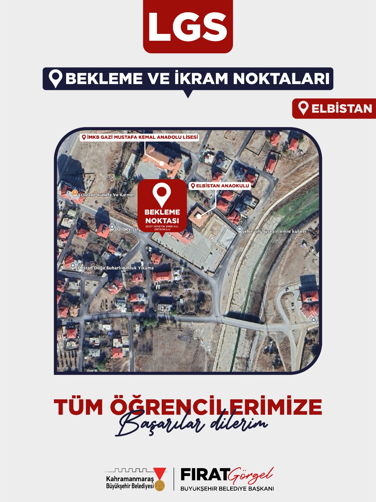 Onikişubat’ta Kadir Paşa Bulvarı üzerindeki Senem Ayşe Anaokulu önünde, Dulkadiroğlu’nda ise Hacı Bektaşi Veli Caddesi’ndeki okul bölgesinde kurulan alanlarda vatandaşlara ikramlarda bulunulacak. Elbistan’da ise Ali Tekinsoy Ortaokulu, Şehit Teğmen Harun Kılıç Ortaokulu ve Şehit Hüseyin Emre Kul Ortaokulu önlerinde oluşturulacak bekleme noktaları, sınav süresince hizmet verecek.