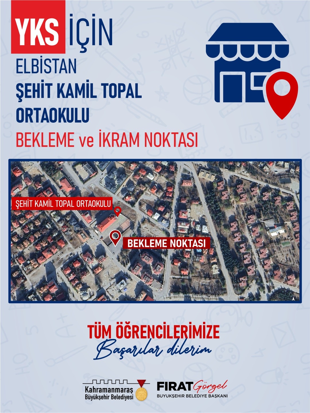 Uygulama kapsamında Onikişubat’ta KSÜ Avşar Kampüsü Fen Fakültesi önünde, Dulkadiroğlu’nda ise Hacı Bektaşi Veli Caddesi üzerindeki okul bölgesinde bekleme alanları oluşturulacak. Vatandaşlara burada çeşitli ikramlarda bulunularak sınav sürecinde daha huzurlu ve konforlu bir atmosfer sunulacak. Elbistan’da da benzer uygulamalar hayata geçirilecek. Esentepe Ortaokulu, Mesleki ve Teknik Anadolu Lisesi ile Şehit Kamil Topal Ortaokulu önlerinde kurulacak bekleme alanları, sınav süresince öğrenci yakınlarına hizmet verecek.