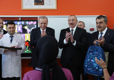 Cumhurbaşkanı Recep Tayyip Erdoğan ve Azerbaycan Cumhurbaşkanı İlham Aliyev’in katıldığı törenle Kahramanmaraş’ta 250 Bininci Afet Konutu’nun teslim töreni gerçekleştirildi. Azerbaycan Mahallesi’nde, yoğun bir katılımla gerçekleşen programın ardından Cumhurbaşkanı Erdoğan ile Azerbaycan Cumhurbaşkanı İlham Aliyev bölgedeki konutlarına taşınan depremzede aileyi de ziyaret etti. Samimi bir ortamda gerçekleşen ziyaretin ardından Erdoğan ve Aliyev, Azerbaycan Mahallesi’nde eğitime başlayan Haydar Aliyev İlkokulu öğrencileriyle bir araya geldi.