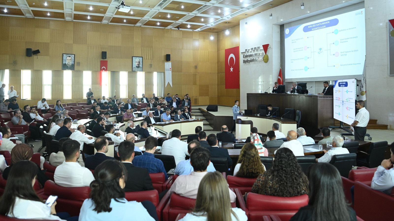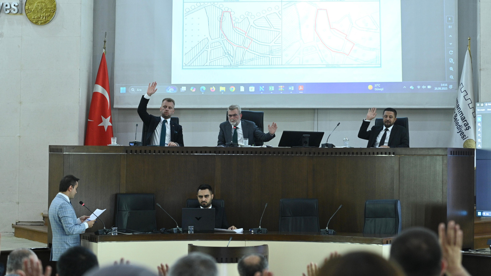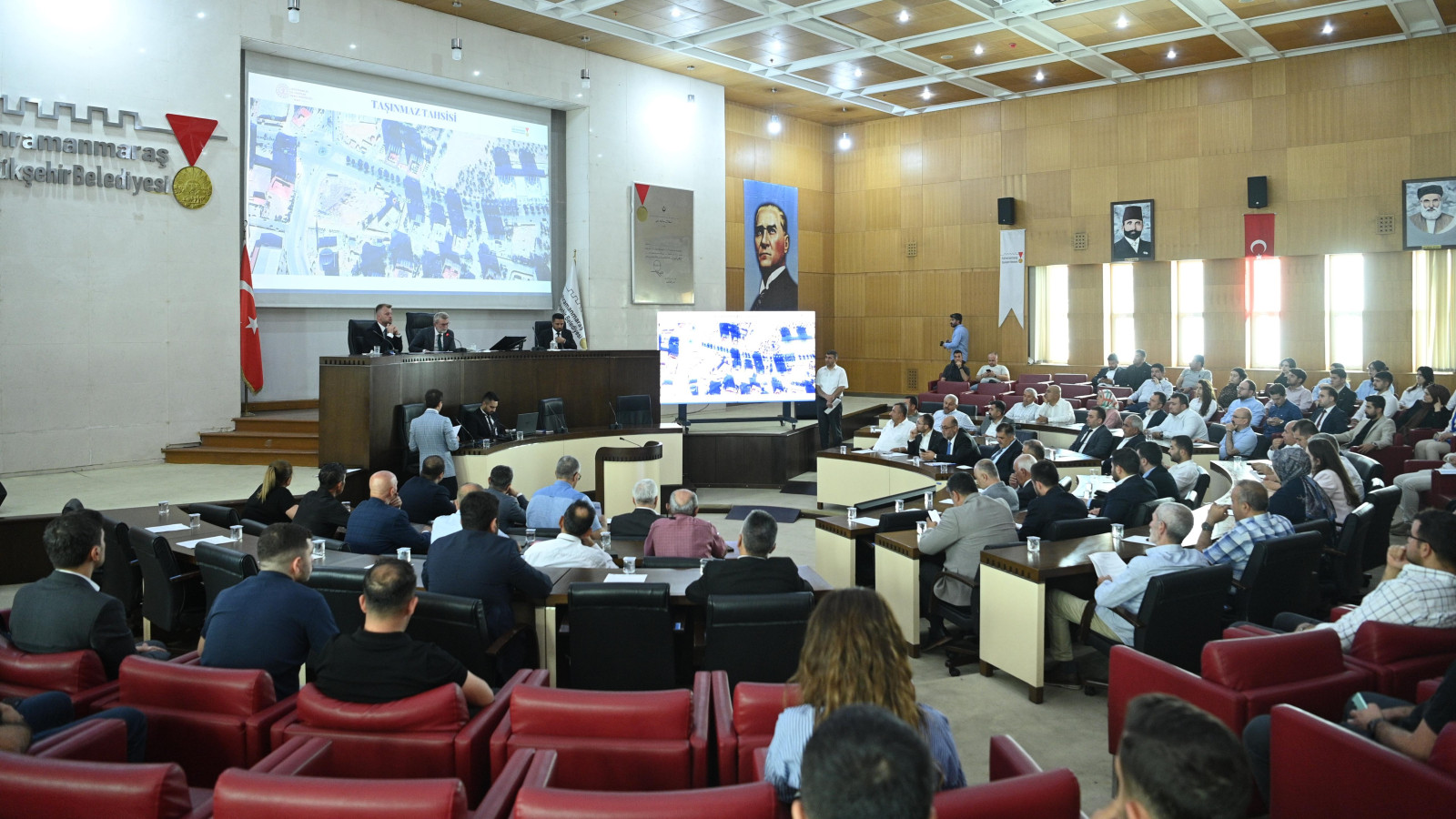 Kahramanmaraş Büyükşehir Belediyesi Haziran Ayı Olağan Meclis Toplantısı, Büyükşehir Belediye Başkanı Fırat Görgel’in başkanlığında gerçekleştirildi. Meclis Toplantı Salonu’nda yapılan toplantıya, ilçe belediye başkanları ile meclis üyeleri de katıldı. Geniş katılımla düzenlenen toplantıda, şehrin gelişimine katkı sağlayacak önemli kararlar alındı. Toplam 66 gündem maddesinin görüşüldüğü toplantıda, şehir genelinde yürütülecek yatırımlar masaya yatırıldı. Toplantının dikkat çeken başlıklarından biri ise, kamu hizmetlerinin daha etkin şekilde sürdürülmesi amacıyla Büyükşehir Belediyesinin araç filosunun güçlendirilmesine yönelik alınan karar oldu. Meclis üyelerinin oy birliğiyle alınan karara göre; Büyükşehir Belediyesi filosuna 3 adet arazöz ve 1 adet kamyonet daha kazandırılacak. Böylece temizlik gibi hizmetlerde daha hızlı ve etkili müdahale imkânı sağlanmış olacak. Toplantı dilek ve temennilerle noktalandı.