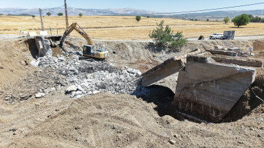 Kahramanmaraş Büyükşehir Belediyesi, şehrin ulaşım altyapısını güçlendirmek için 11 ilçede eş zamanlı olarak yol yatırımlarını sürdürüyor. Bu kapsamda çalışma gerçekleştirilen noktalardan biri de Dulkadiroğlu’nun kırsal mahallelerinden Yeniyurt oldu. Mahalleye ulaşım sağlayan güzergâhta bulunan 46 yıllık köprü yerine son derece modern ve kullanışlı bir köprü inşa ediliyor. Yıpranmış yapısı ve dar geçişiyle vatandaşların ulaşım ihtiyacını karşılamakta zorlanan köprünün yerine 53 metre genişliğe ve 9 metre uzunluğa sahip modern bir köprü kazandırılıyor. Yol Yapım, Bakım ve Onarım Dairesi Başkanlığınca eski köprünün yıkımı gerçekleştiriliyor. Yıkım ve zemin hazırlıklarının ardından mahalleye kazandırılacak yeni köprünün inşasına başlanacak.