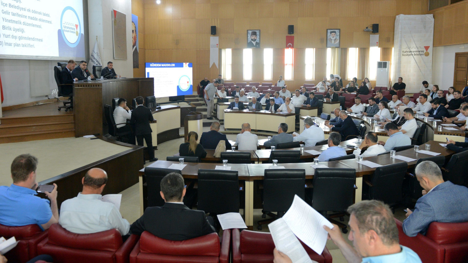 Kahramanmaraş Büyükşehir Belediyesi Temmuz Ayı Olağan Meclis Toplantısı, Büyükşehir Belediyesi Meclis Başkan Vekili Mehmet Beşen başkanlığında gerçekleştirildi. Meclis Toplantı Salonu’nda yapılan toplantıya, ilçe belediye başkanları ile meclis üyeleri de katıldı. Geniş katılımla düzenlenen toplantıda, şehrin gelişimine katkı sağlayacak önemli kararlar alındı. Toplam 11 gündem maddesinin görüşüldüğü toplantıda, şehir genelinde yürütülecek yatırımlar masaya yatırıldı. Ayrıca toplantıda İller Bankasının finansman desteğiyle İtfaiye Dairesi Başkanlığına toplam 5 Milyon Euro tutarında araç alınmasına karar verildi. Yeni itfaiye araçları ile Büyükşehir’in yangınlara ve doğal afetlere karşı daha etkin mücadele etmesi hedefleniyor.