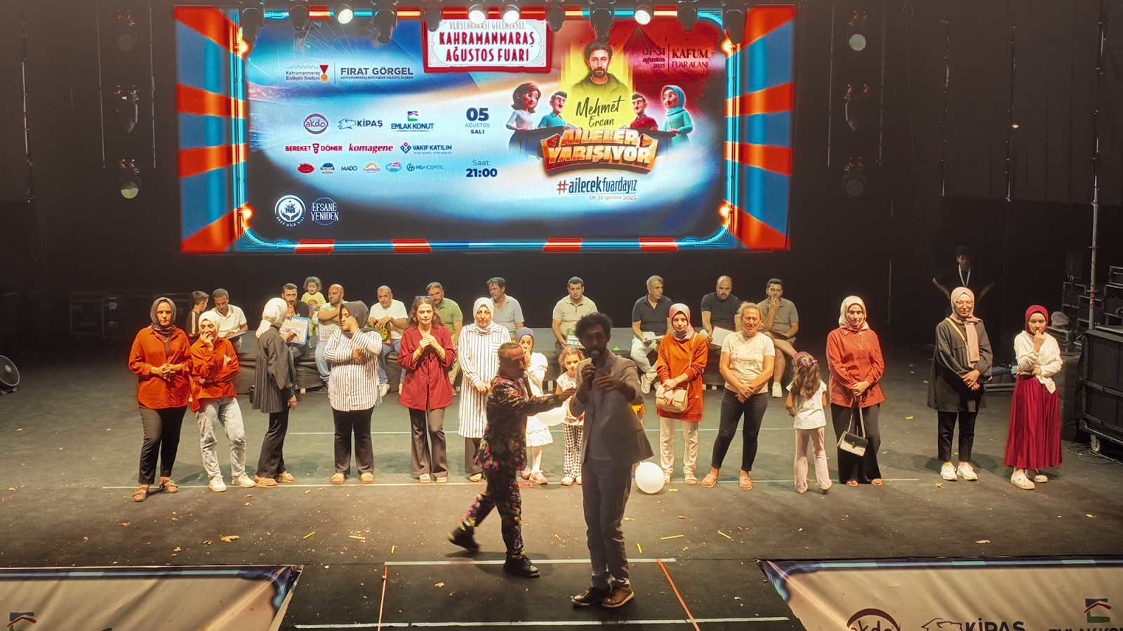 Kahramanmaraş Büyükşehir Belediyesi tarafından “2025 Aile Yılı” kapsamında bu yıl “Ailecek Fuardayız” temasıyla düzenlenen Uluslararası Geleneksel Ağustos Fuarı, şehirde sosyal yaşama canlılık katmaya devam ediyor. 7’den 70’e her yaştan vatandaşın yoğun ilgi gösterdiği fuar, KAFUM Fuar Alanı’nda binlerce misafiri ağırlamayı sürdürüyor. Fuar programı kapsamında düzenlenen özel etkinliklerden biri de Türkiye’nin sevilen yazar ve sanatçılarından Mehmet Ercan’ın sunumuyla gerçekleştirilen “Aileler Yarışıyor” programı oldu. Etkinlikte, sahneye çıkan çiftler Mehmet Ercan’ın yönelttiği sorularla hem bilgilerini hem de aralarındaki uyumu test etme fırsatı buldu. Dostane rekabetin hâkim olduğu yarışmada izleyiciler de sahnedeki neşeli diyaloglara kahkahalarla eşlik etti. Program boyunca sahnede keyifli anlar yaşanırken, izleyiciler de eğlenceye doydu. Yarışma sonunda dereceye giren aileler, çeşitli hediyelerle ödüllendirildi.
