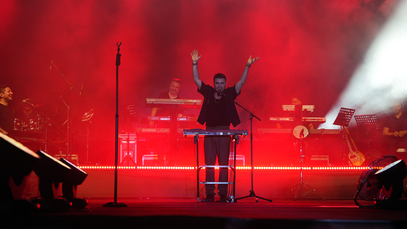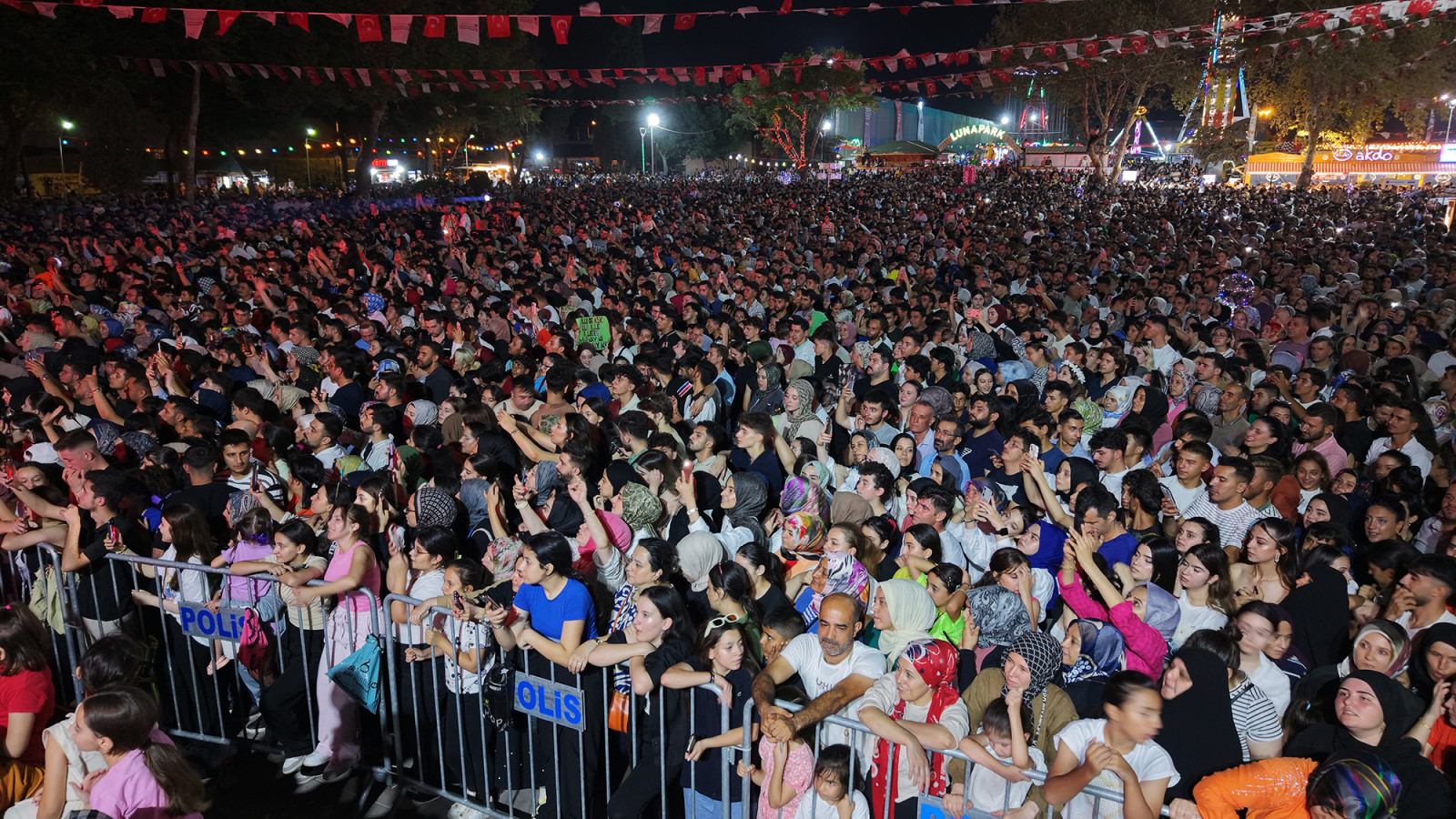 Kahramanmaraş Büyükşehir Belediyesinin Geleneksel Ağustos Fuarı müzik dolu bir geceye daha ev sahipliği yaptı. Türk pop müziğinin sevilen ismi Mustafa Ceceli, Cumartesi akşamı KAFUM’da sahne alarak binlerce müziksevere unutulmaz anlar yaşattı. Alana akın eden hayranlarıyla buluşan Ceceli, sevilen şarkılarından oluşan geniş repertuvarıyla dinleyicilere adeta müzik ziyafeti sundu. “Salıncak”, “Rüzgar”, “Leyla Mecnun”, “Öptüm Nefesinden”, “Bedel”, “Rastgele”, “Maşallah” ve “İlle de Aşk” gibi hit parçalarını seslendiren sanatçı, performansıyla büyük beğeni topladı. Yaklaşık iki saat sahnede kalan Ceceli, konserin finalinde hareketli oyun havalarıyla tempoyu doruğa çıkardı. KAFUM’u adeta bir şenlik alanına çeviren sanatçıya, vatandaşlar hem coşkulu alkışlarıyla hem de halaylarla eşlik etti. Kahramanmaraşlı müzikseverler, sanatçının şarkılarına hep bir ağızdan eşlik ederek KAFUM’u dev bir koroya dönüştürdü. Geniş repertuvarı, samimi sohbeti ve enerjisiyle gönülleri fetheden Mustafa Ceceli, fuar tarihine damga vuran konserlerden birine imza attı.