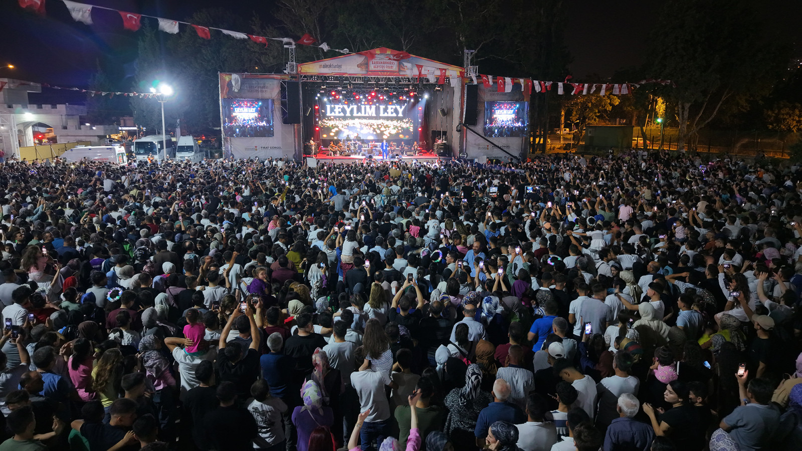 Kahramanmaraş Büyükşehir Belediyesinin düzenlediği Geleneksel Ağustos Fuarı, açıldığı günden bu yana en yoğun ziyaretçi akınına uğradığı günlerden birini yaşadı. Fuarın 25’inci gününde sahne alan Türk halk müziğinin sevilen sanatçısı Mahmut Tuncer, on binlerce müziksevere unutulmaz bir gece yaşattı. KAFUM Fuar Alanı’nı hınca hınç dolduran vatandaşlar, konser boyunca sanatçının seslendirdiği eserlere hep bir ağızdan eşlik etti. Adeta insan seline dönüşen gecede Tuncer; Muradım Gözümde Kaldı, Leylo, Lo Lo, Altın Dişli Hayriye, Evlerinin Önü Yonca, Kara Üzüm Habbesi ve Delalım gibi dillere pelesenk olmuş eserleri Kahramanmaraşlılar için seslendirdi. Sahne performansıyla genç yaşlı her dinleyiciye hitap eden Mahmut Tuncer, slow parçalarla duygusal anlar yaşatırken, hareketli eserleriyle de coşkuyu zirveye taşıdı. Samimi tavırları ve sıcak sohbetleriyle izleyicilerin gönlünü bir kez daha kazanan sanatçı, Kahramanmaraşlıların yoğun ilgisine teşekkür etti. Gece boyunca hem duygulanan hem de doyasıya eğlenen vatandaşlar, sanatçıyı uzun süre alkışladı. Tuncer, konserin sonunda sevenlerine seslenerek, Kahramanmaraş’ta sahne almaktan duyduğu mutluluğu dile getirdi.