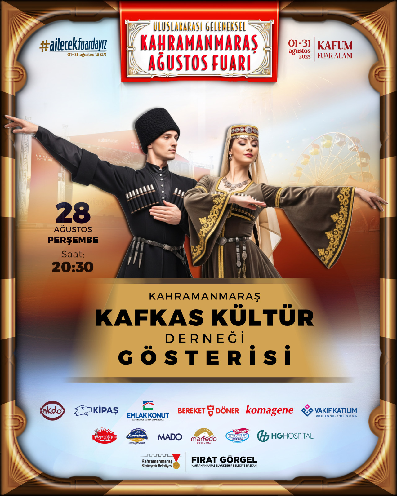 Geleneksel Ağustos Fuarı’nda 28 Ağustos Perşembe günü Kafkas dans gösterisi sahnelenecek. Etkinlikte Kafkas halklarının zengin kültürel mirası; ritmik danslarla, coşkulu müziklerle ve yüksek enerjili koreografilerle hayat bulacak.