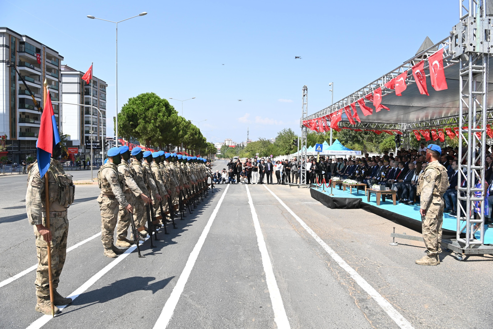 30 Ağustos Zafer Bayramı’nın 103. yıl dönümü, tüm Türkiye’de olduğu gibi Kahramanmaraş’ta da büyük bir coşku ve gururla kutlandı. Gün boyu süren programlarda şehirde adeta milli birlik ve beraberlik ruhu yeniden canlandı. Kutlamalar sabah saatlerinde İl Emniyet Müdürlüğü bahçesinde gerçekleştirilen çelenk sunma töreniyle başladı. Vali Mükerrem Ünlüer, Fırat Kalkanı ve Zeytin Dalı Harekât Bölgesi Komutanı Tümgeneral Ahmet Gülmüş ve Büyükşehir Belediye Başkanı Fırat Görgel, Atatürk Anıtı’na çelenk sundu.
