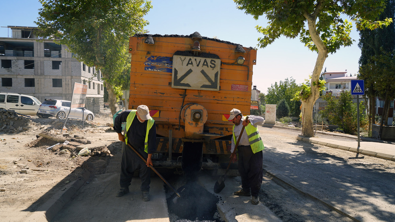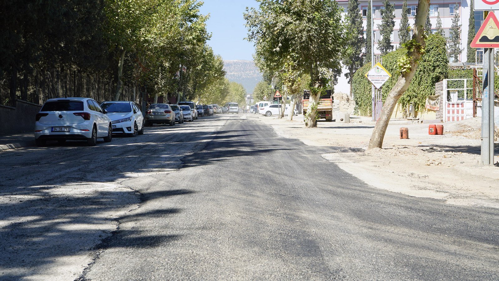 KASKİ, Dulkadiroğlu Bahçelievler Mahallesi 100. Yıl Caddesinde altyapı çalışmalarının ardından bozulan yüzeyleri asfalt kaplıyor.