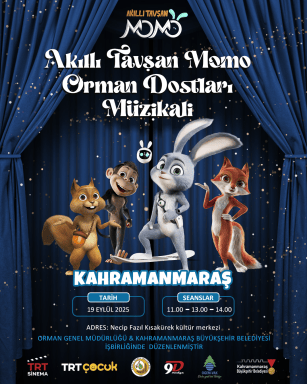 Kahramanmaraş Büyükşehir Belediyesi, sosyal belediyecilik anlayışı doğrultusunda toplumun her kesimine dokunan kültürel ve sanatsal faaliyetlerine hız kesmeden devam ediyor. Bu kapsamda, çocuklara yönelik özel etkinliklerini sürdüren Büyükşehir Belediyesi, Orman Genel Müdürlüğü iş birliğinde 19 Eylül Cuma günü Akıllı Tavşan Momo Orman Dostları Müzikali etkinliği çocuklarla buluşacak. NFK Kültür Merkezinde düzenlenecek olan etkinlik 11.00, 13.00 ve 14.00 saatleri arasında 3 farklı seans ile çocuklarla buluşacak.  Büyükşehir Belediyesinden yapılan açıklamada, çocuklara ormanların önemi, doğayı korumanın gerekliliği ve çevre bilinci gibi konuların eğlenceli ve öğretici bir dille anlatılacağı müzikale tüm çocukların davetli olduğu belirtildi.