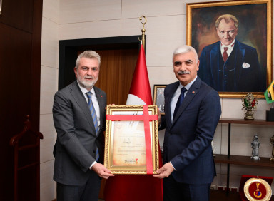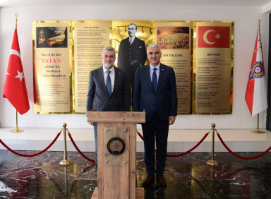 Kahramanmaraş Büyükşehir Belediye Başkanı Fırat Görgel, Cumhurbaşkanı Recep Tayyip Erdoğan’ın tensipleri ile Kahramanmaraş İl Emniyet Müdürü olarak atanan Hasan Yiğit’i makamında ziyaret etti. Samimi bir atmosferde gerçekleştirilen ziyarette Başkan Görgel, Yiğit’e yeni görevinde başarılar dileyerek şehrin huzur ve güvenliği konusunda kurumlar arası iş birliğinin önemine vurgu yaptı. İl Emniyet Müdürü Hasan Yiğit ise, ziyaretlerinden dolayı Başkan Fırat Görgel’e teşekkür ederek şehrin huzur ve güvenliğinin sağlanması için tüm ekipleriyle özveriyle çalışacaklarını ifade etti. Başkan Görgel, İl Emniyet Müdürü Yiğit’e İstiklal Madalyası ve Beratı tablosu hediye etti.