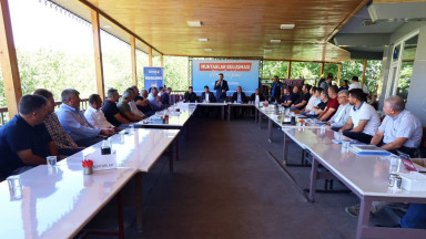 Kahramanmaraş Büyükşehir Belediyesi, şehir genelinde mahallelerin ihtiyaçlarını yerinde değerlendirmek ve muhtarların taleplerini dinlemek amacıyla düzenlediği Muhtarlar Buluşması programlarına devam ediyor. Bu kapsamda buluşmanın yeni durağı Çağlayancerit oldu. Büyükşehir Belediyesi Genel Sekreter Yardımcısı Mutlu Kaya başkanlığında gerçekleştirilen toplantıya; AK Parti İl Başkan Yardımcısı Ali Köfte, AK Parti Çağlayancerit İlçe Başkanı Ferhat Kekil, Büyükşehir Belediyesi ve KASKİ yetkilileri ile 19 mahalle muhtarı katılım sağladı. Toplantıda, Çağlayancerit’in öncelikli ihtiyaçları, temel eksiklikleri, yatırım talepleri ve mahallelerin sorunları detaylı şekilde ele alındı. Muhtarlar, bölgelerindeki sorunları ve taleplerini doğrudan yetkililere iletme imkânı buldu.
