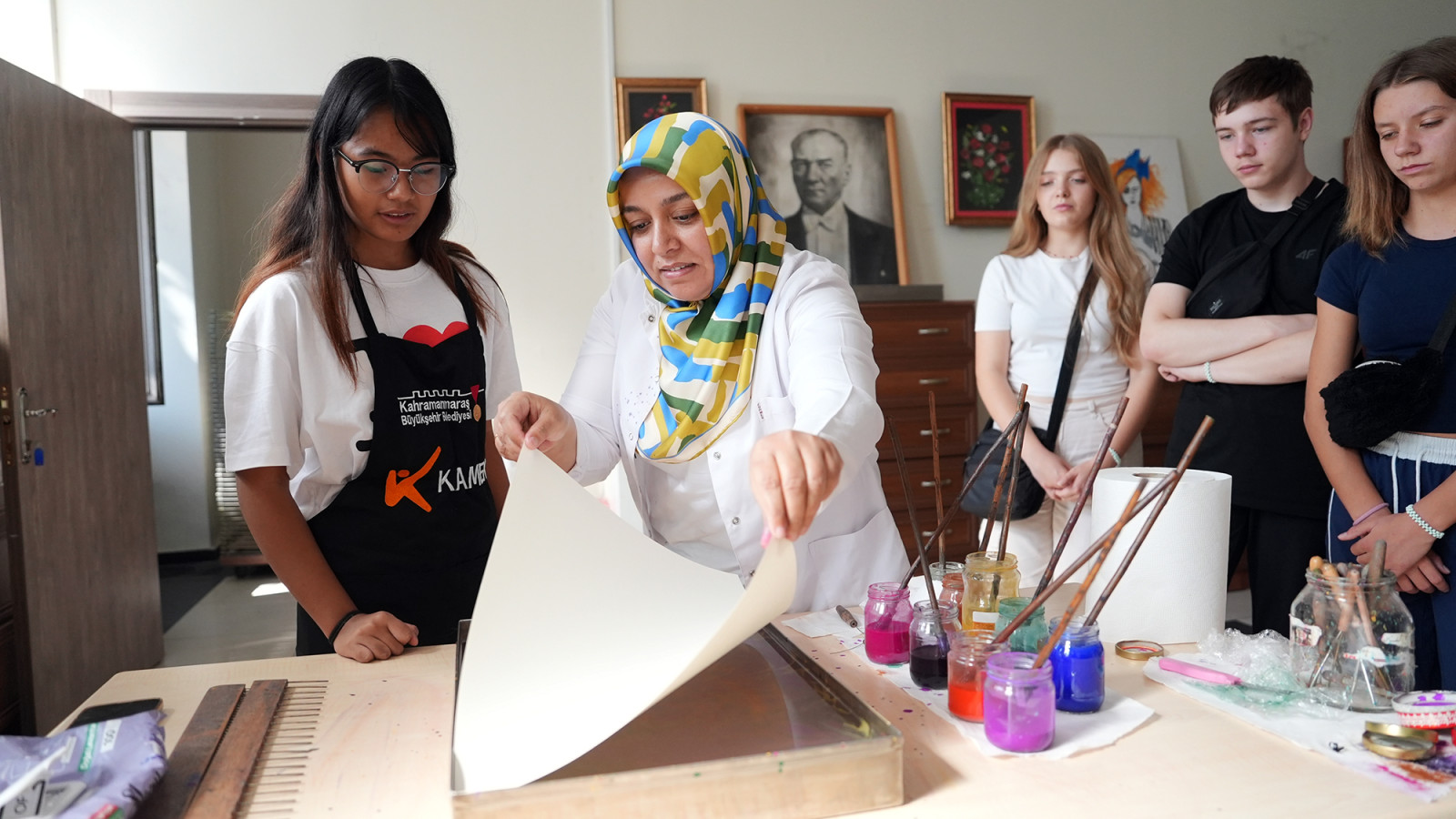 Ziyarete katılan öğrenciler de duydukları memnuniyeti dile getirdi. Polonya’dan gelen Zosia, KAMEK’teki ebru deneyiminin kendisi için unutulmaz olduğunu ifade ederek, “Buradaki ebru kursunu çok beğendim. İlk defa denedim ve çok keyif aldım. Kahramanmaraş’ı da çok sevdim, özellikle dondurmaya hayran kaldım. Burada olduğum için çok mutluyum” şeklinde konuştu.