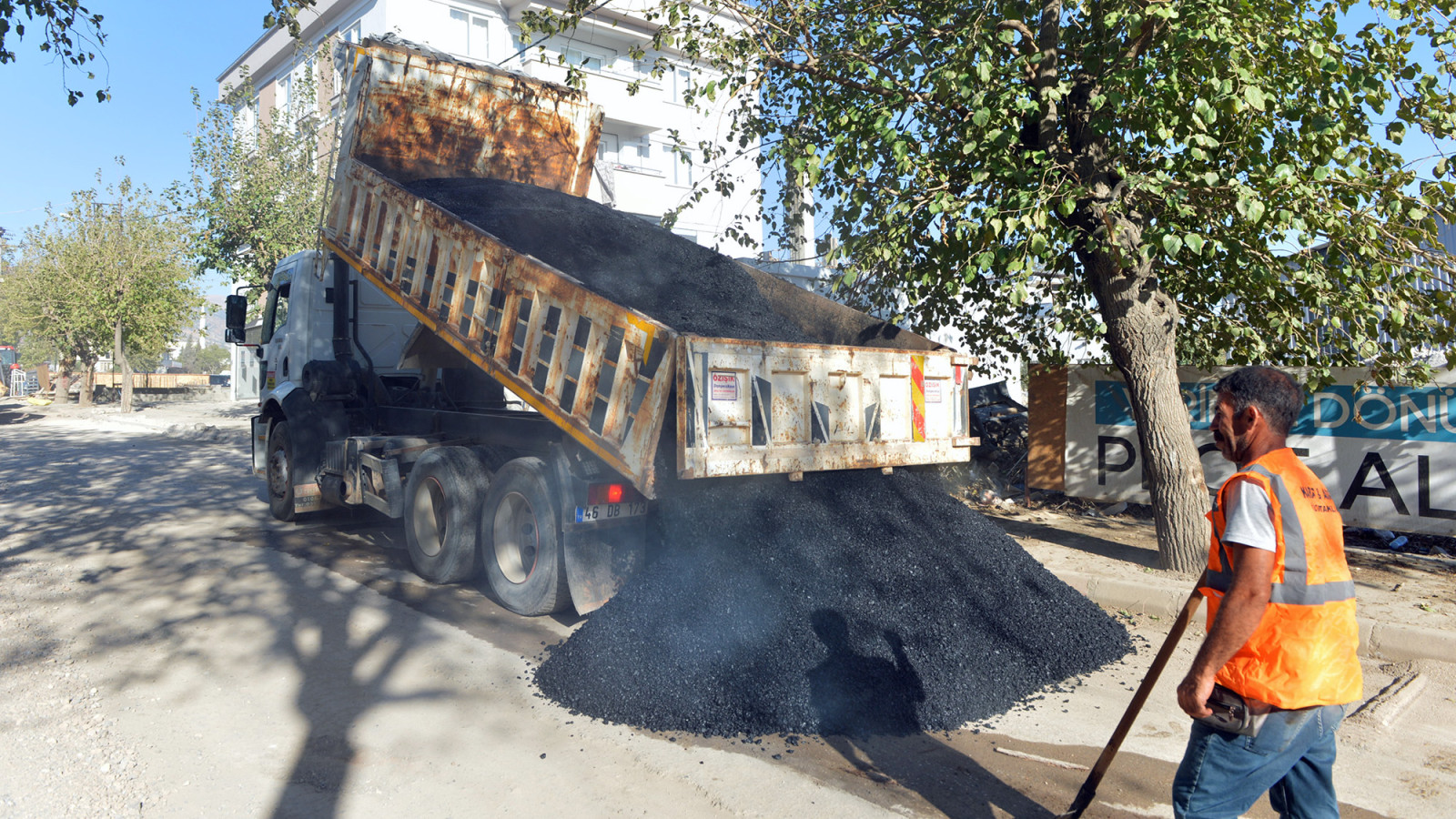KASKİ, Dulkadiroğlu Mehmet Akif Mahallesi’nde altyapı imalatlarında bozulan yol yüzeylerini sıcak asfaltla kaplıyor.