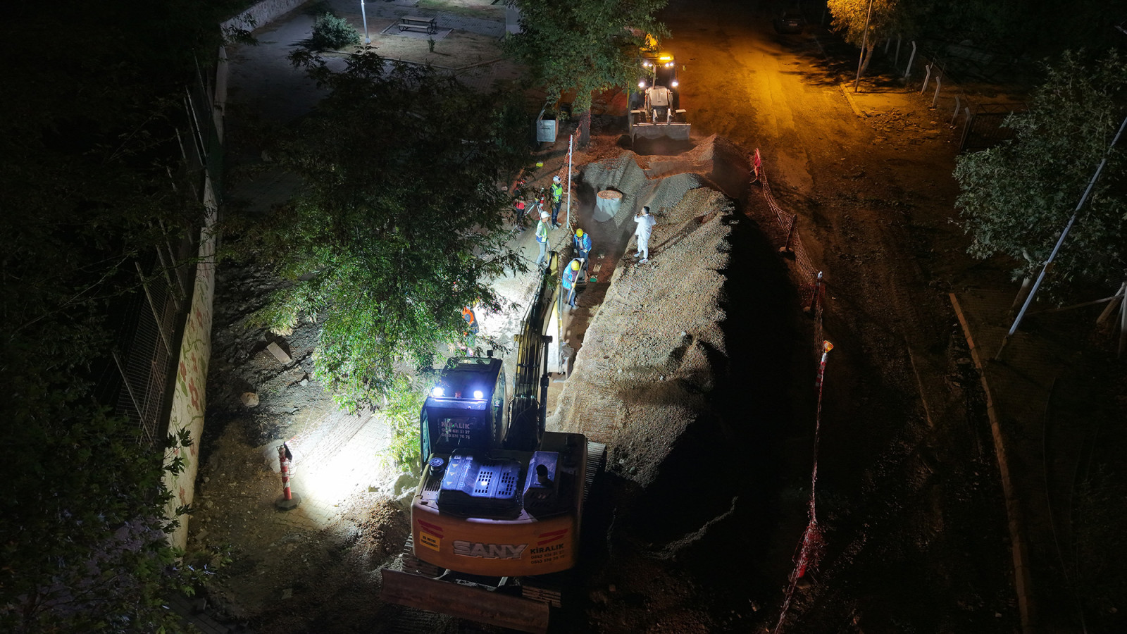 Yeni altyapı hatlarının bir an önce tamamlanarak hizmete alınması için ekipler vardiya sistemi ile sahada yoğun bir mesai harcıyor.