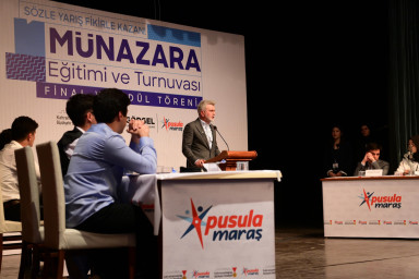 Gençlik projeleriyle dikkat çeken Kahramanmaraş Büyükşehir Belediyesi, yeni bir çalışmaya daha imza attı. Gençlerin düşünme, tartışma ve ifade becerilerini geliştirmek amacıyla hayata geçirilen Münazara Eğitimi ve Turnuvası’nın final programı da büyük bir heyecanla tamamladı. Necip Fazıl Kısakürek Kültür Merkezi’nde gerçekleştirilen buluşmada, eğitim sürecini başarıyla tamamlayan gençler, oluşturdukları takımlar halinde jüri karşısına çıkarak fikirlerini savundu. Son 4 takımın sahne aldığı finalde, katılımcılar argümanlarını güçlü bir şekilde dile getirirken izleyicilerden de büyük alkış topladı. Programı takip edenler arasında Büyükşehir Belediye Başkanı Fırat Görgel de yer aldı. Görgel, gençlerin sahne performanslarını büyük bir ilgiyle izleyerek heyecanlarına ortak oldu. Turnuva sonunda dereceye giren takımlara toplam 150 bin TL ödül takdim edildi.