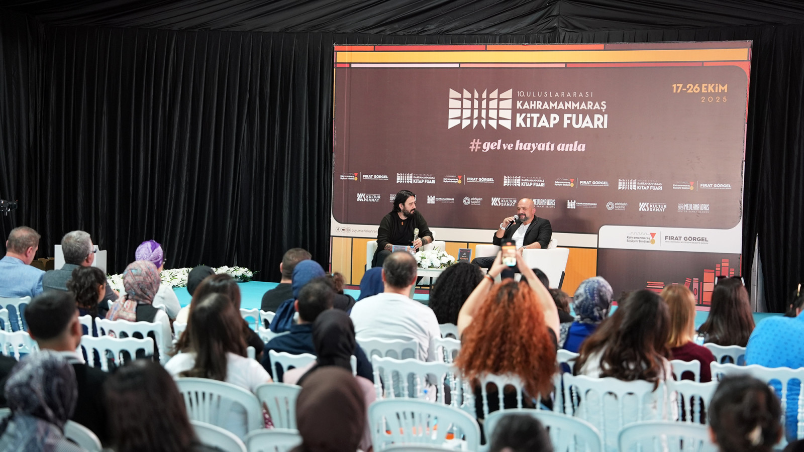 Kahramanmaraş Büyükşehir Belediyesinin düzenlediği 10. Uluslararası Kahramanmaraş Kitap Fuarı, ikinci gününde de yoğun ilgiyle devam ediyor. Her yaştan kitapseverin ziyaret ettiği fuarda, Türkiye’nin sevilen yazarlarından Uğur Batı ile eğitimci – yazar Prof. Dr. Esef Hakan Toytok, edebiyatseverlerle bir araya geldi. KAFUM’da gerçekleştirilen söyleşi programına okurlar büyük ilgi gösterdi. Dolu dolu geçen etkinlikte Batı ve Toytok; toplumsal değerler, bireysel ve toplumsal gelişim ile birey-toplum etkileşimi gibi pek çok konuyu farklı bakış açılarıyla ele aldı. Katılımcıların aktif olarak yer aldığı söyleşi hem düşünsel hem de duygusal yönüyle dikkat çekti. Programın ardından Uğur Batı, kitaplarını imzalayarak okurlarıyla birebir sohbet etme imkânı buldu.