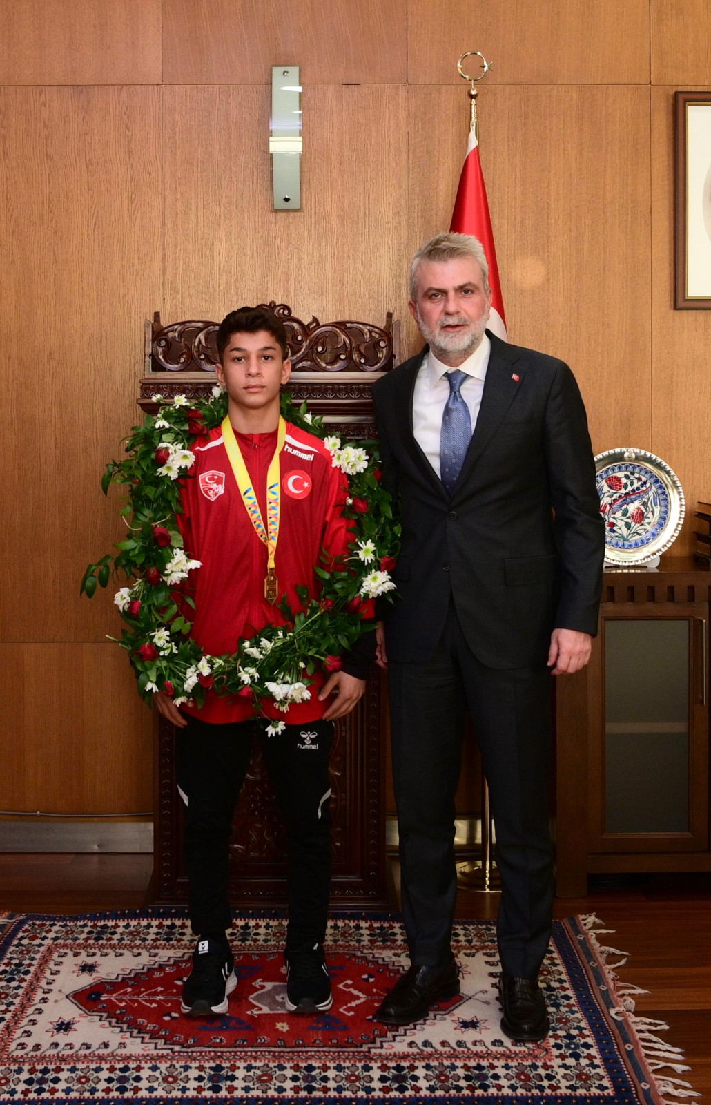 Ziyarete ilişkin değerlendirmelerde bulunan Büyükşehir Belediye Başkanı Fırat Görgel, “Romanya’da düzenlenen U17 Güreş Balkan Şampiyonası’nda elde edilen bu önemli başarı, bizler için büyük bir gurur kaynağı oldu. 48 kilogramda Balkan Şampiyonu olan Şamil Şahan’ı, 45 kilogramda altın madalya kazanan İbrahim Bera Kıvrak’ı ve 43 kilogramda gümüş madalya elde eden Hatice Kazmacı’yı yürekten kutluyorum. Kahramanmaraş, tarih boyunca spora ve özellikle güreşe büyük değer vermiş bir şehir. Bu genç sporcularımız, bu geleneği başarıyla sürdürerek bizlere onur yaşattı. Bizler de Kahramanmaraş Büyükşehir Belediyesi olarak sporun her branşında gençlerimizin yanında olmaya, tesis yatırımlarımızı artırmaya ve geleceğin şampiyonlarını desteklemeye kararlıyız. Şampiyonlarımızı, ailelerini ve emeği geçen antrenörlerimizi tebrik ediyor, başarılarının daim olmasını diliyorum” ifadelerini kullandı.