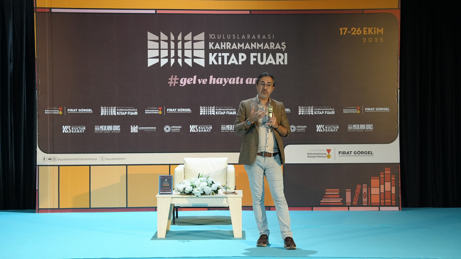 10. Uluslararası Kahramanmaraş Kitap Fuarı’nda okurlarla bir araya gelen Klinik Psikolog ve Yazar Dr. Mehmet Teber, “Depremin ardından yeni konut ve iş yerleri inşa etmek ne kadar önemliyse, sosyal ve kültürel etkinlikler de bir o kadar önemli. İyileşmenin bir parçası da bu etkinlikler. Büyükşehir Belediyesinin yol ve altyapı kadar bu tür faaliyetlere de destek verdiğini görmek mutluluk verici” dedi.