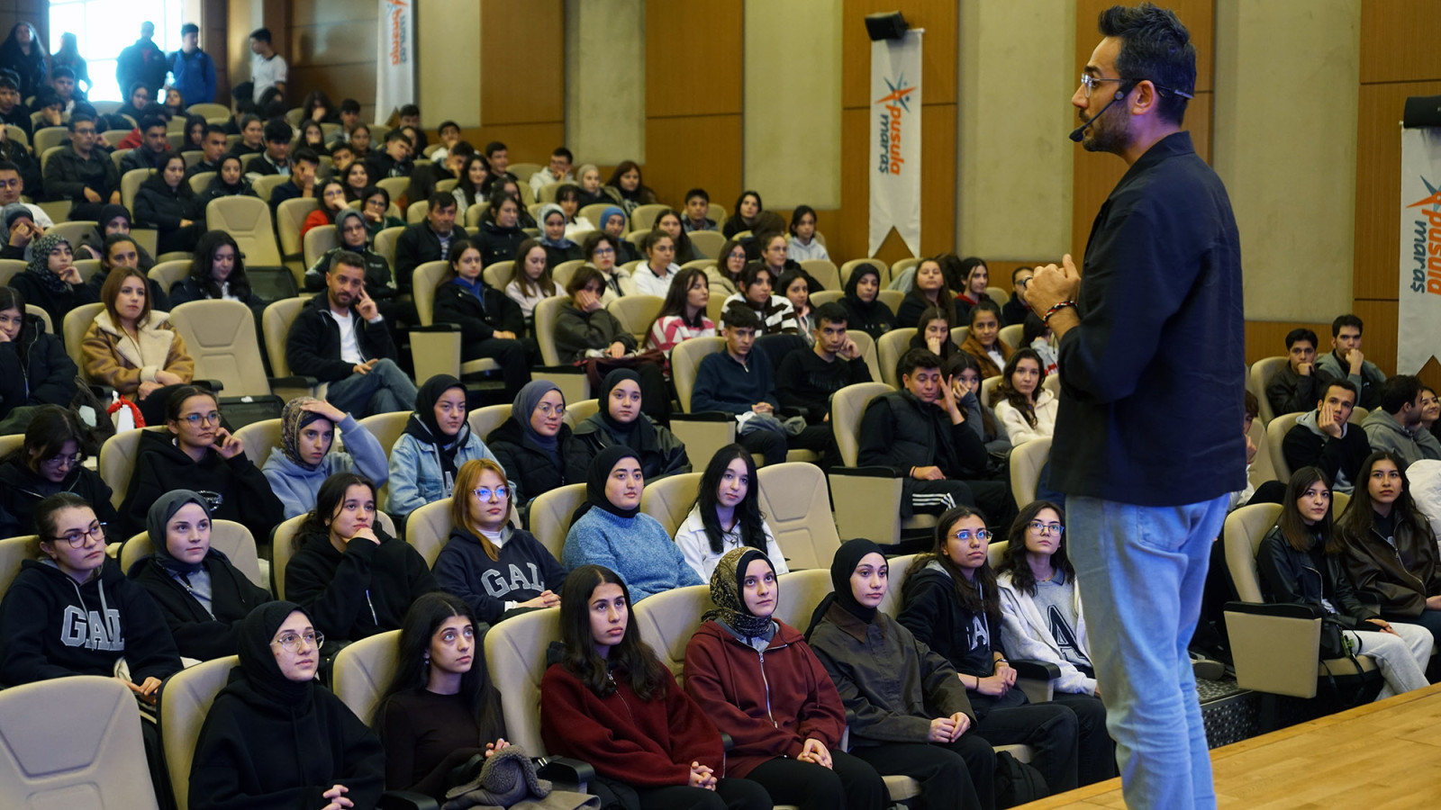 Kahramanmaraş Büyükşehir Belediyesinin gençlik markası Pusula Maraş tarafından sınav maratonundaki gençlere yönelik düzenlenen Motivasyon Günleri programı, eğitimci – yazar Gökhan Müftüoğlu’nun (Gri Koç) katılımıyla Göksun’da sürdü. Türkiye’de milyonlarca öğrencinin takip ettiği Gri Koç, Göksun 100. Yıl İlçe Halk Kütüphanesi Konferans Salonu’nda gençlerle bir araya gelerek sınav hazırlık sürecine dair önemli motivasyon başlıklarını paylaştı. Salonun tamamen dolduğu programda gençlerle samimi bir atmosferde buluşan Müftüoğlu, sınav stresinin yönetiminden konsantrasyon artırmaya, doğru çalışma tekniklerinden zaman planlamasına kadar pek çok konuda yol gösterici aktarımlarda bulundu. Sosyal medyada büyük etki uyandıran içerikleri, kaleme aldığı kitaplar ve Türkiye’nin birçok şehrinde gerçekleştirdiği konferanslarla geniş bir kitleye ulaşan Gri Koç, Göksun’daki gençlere hem akademik hem de kişisel gelişim açısından kritik öneriler sundu. Konuşmasında sınav sürecinin yalnızca bilgi birikimi değil aynı zamanda disiplin, duygusal dayanıklılık ve stratejik çalışma alışkanlıkları gerektirdiğine dikkat çeken Müftüoğlu, dikkat dağınıklığını azaltmaya yönelik uygulanabilir teknikler, sınav öncesi kaygıyı kontrol edebilecek nefes ve zihinsel rahatlama egzersizleri ile günün verimli kullanılmasına yönelik çalışma takvimi önerilerini paylaştı.
