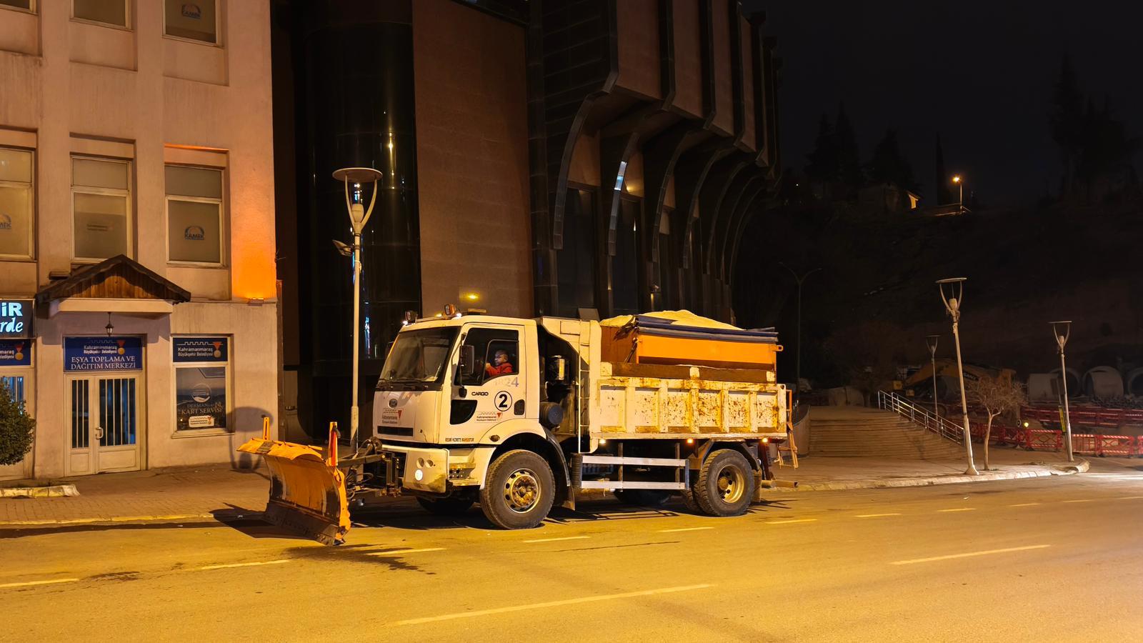 Kahramanmaraş Büyükşehir Belediyesi, sabaha karşı şehir genelinde etkili olması beklenen kar yağışı öncesinde tüm birimleriyle teyakkuza geçti. Ulaşımda aksama yaşanmaması ve vatandaşların günlük hayatının olumsuz etkilenmemesi amacıyla yüzlerce araç ve personel sahada görevlendirildi. Yol Yapım, Bakım ve Onarım Dairesi Başkanlığı ile Kuzey İlçeler Dairesi Başkanlığı koordinasyonunda yürütülen çalışmalar kapsamında, şehir merkezi ve ilçelerde ana arterler başta olmak üzere cadde, bulvar ve kavşaklarda konuşlanmalar tamamlandı. Kar yağışının başlamasıyla birlikte ekiplerin anında müdahale edebilmesi için kritik noktalar önceden belirlendi. Şehir merkezinde ekiplerin konuşlandığı noktalar arasında; Ulu Camii, Şekerdere Bulvarı, Necip Fazıl Kısakürek Kültür Merkezi önü, Arsan Kavşağı, Pınarbaşı, Muhsin Yazıcıoğlu Parkı, Kuzey Çevre Yolu, Orman Dairesi, Sümbüllü Kavşağı ve Abdulhamid Han Camii gibi ulaşım yoğunluğunun yüksek olduğu ana güzergâhlar yer aldı. İlçeler ve kırsal mahallelerde de benzer şekilde ekipler hazır bekletiliyor. Kar yağışının ilk anından itibaren ana arterlerin ulaşıma açık tutulmasının öncelikli hedef olduğu vurgulanırken; kar küreme, tuzlama ve solüsyon uygulamalarının eş zamanlı olarak devreye alınacağı belirtildi.