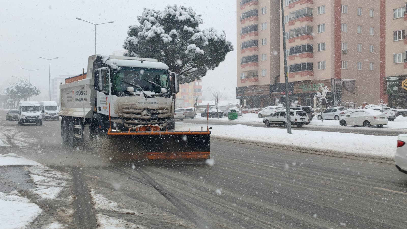 Kahramanmaraş Büyükşehir Belediyesi, şehir genelinde kar yağışının başladığı ilk andan itibaren kar küreme, tuzlama ve solisyon uygulamalarına anında koyuldu. Olumsuz hava koşullarının ulaşımda ve günlük yaşamda herhangi bir aksaklığa yol açmaması için ekipler, sahada yoğun bir mücadele yürütüyor. Kar yağışının etkisini göstermesiyle birlikte harekete geçen Büyükşehir Belediyesi ekipleri, özellikle ana arterlerde kar küreme çalışmalarını başlattı. Yol Yapım, Bakım ve Onarım Dairesi Başkanlığı koordinesinde yürütülen çalışmalar kapsamında cadde, bulvar ve sokaklarda biriken karlar temizlenerek yolların güvenli şekilde ulaşıma açık kalması sağlanıyor.