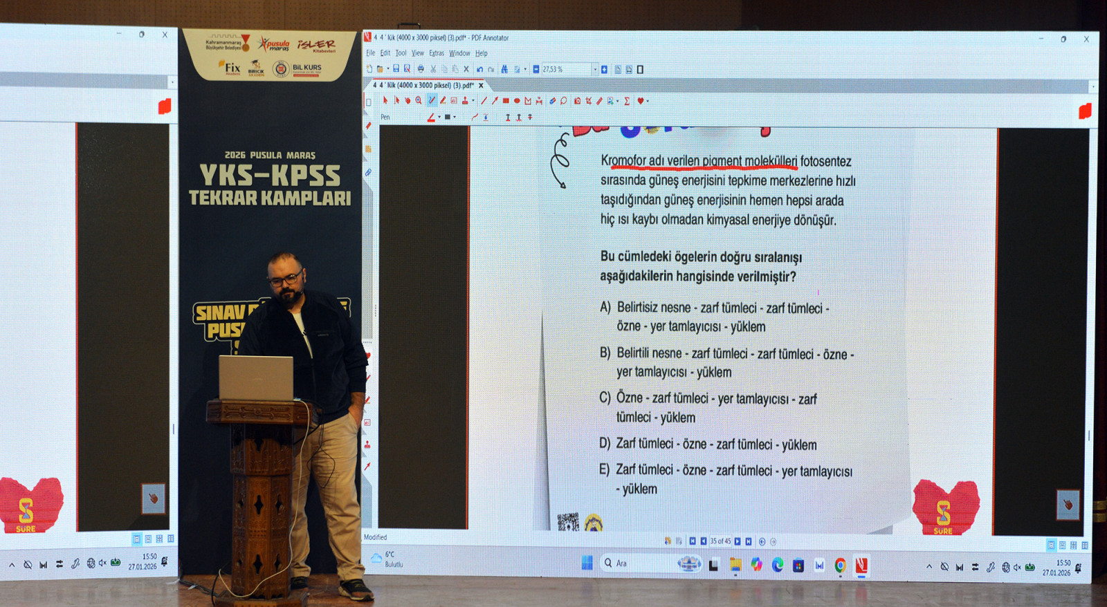 Kahramanmaraş Büyükşehir Belediyesi, gençlere yönelik projelerini her geçen gün çeşitlendirerek sürdürüyor. Genç Başkan Fırat Görgel’in öncülüğünde, gençlik markası Pusula Maraş’ın koordinesinde eğitimde “Fırsat Eşitliği” anlayışıyla hayata geçirilen Yükseköğretim Kurumları Sınavı (YKS) kampı, sınav hazırlığında olan öğrenciler için önemli destekler sunuyor. Mehmet Akif Ersoy Kültür Merkezi’nde gerçekleştirilen ve Türkçe dersi ile devam eden kampta eğitim camiasının saygın isimleri İbrahim Karataş ve Osman Ömür Neslihanoğlu öğrencilerle bir araya geldi. Uzman eğitmenler, Türkçe dersini kapsamlı bir şekilde ele alarak öğrencilere konuların püf noktalarını, pratik soru çözümlerini, sınavda zamanı verimli kullanma stratejileri hakkında altın değerinde bilgiler aktardı.
