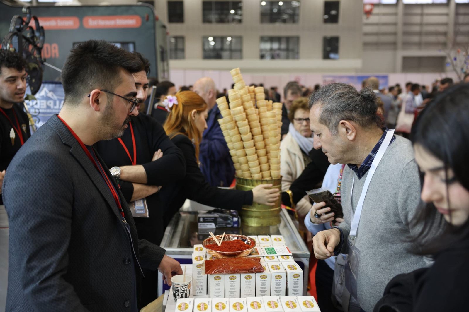 Kahramanmaraş’ın dünyaca ünlü gastronomi mirası da fuarın yıldızları arasında yer aldı. Dondurma, ceviz, tarhana ve çörek başta olmak üzere şehre özgü tescilli ürünleri tatma imkânı bulan ziyaretçiler, Kahramanmaraş mutfağının kendine has lezzetlerine hayran kaldı. Özellikle Maraş Dondurması’nın yoğun ilgi görmesi, standın önünde uzun kuyruklar oluşmasına neden oldu. Ziyaretçiler hem ürünlerin yapım süreci hakkında bilgilendirildi hem de şehrin gastronomi turizmi potansiyelinin ne denli güçlü olduğu yakından gösterildi.